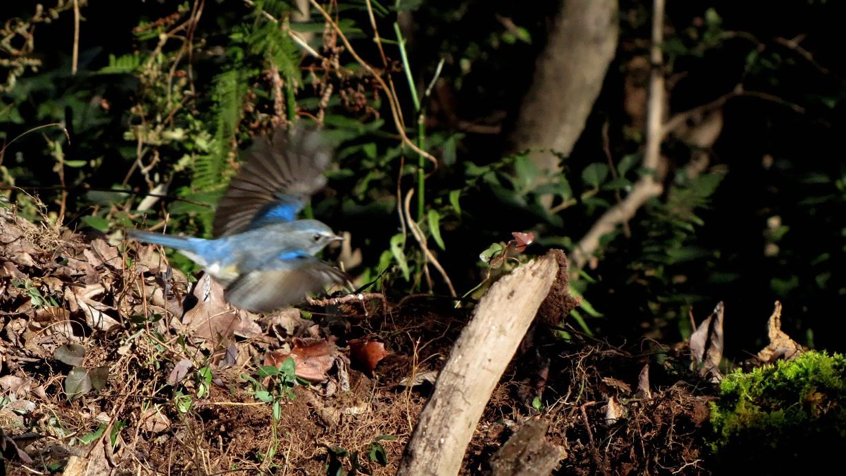 この場所には一本のハゼの木が有って、木に生っている実は全て食べス尽くされて残っていません。今は、木の下に落ちた実を探し回って啄ばんでおり、ハゼの木の下には定期的にルリビタキが現れているのです。