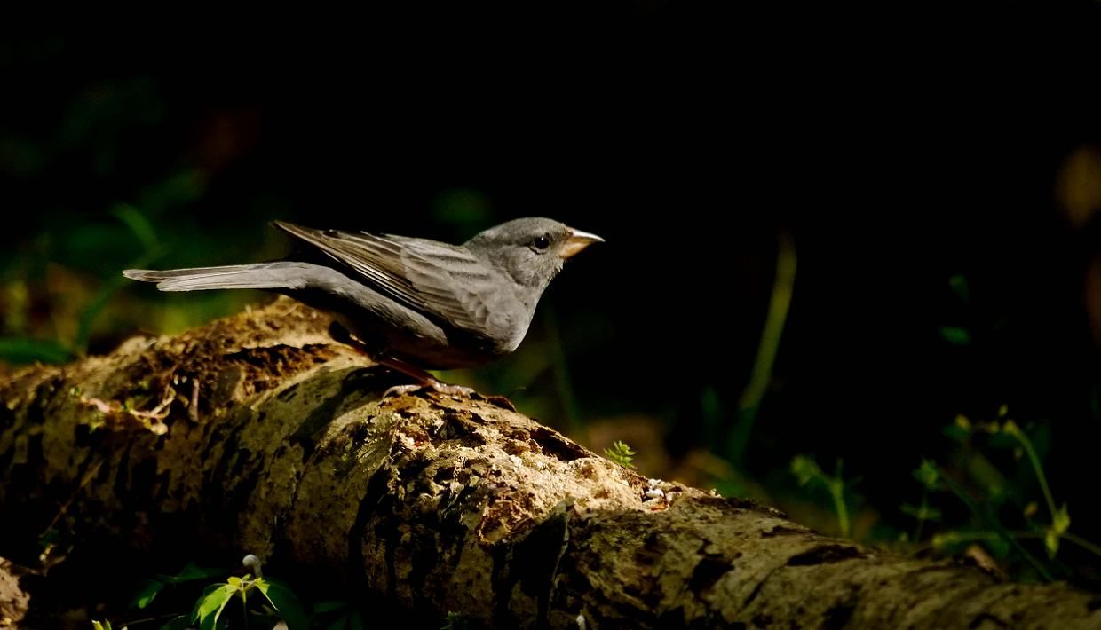 スポットライトに浮かぶ冬鳥のクロジ、大分ではあまり目にしません