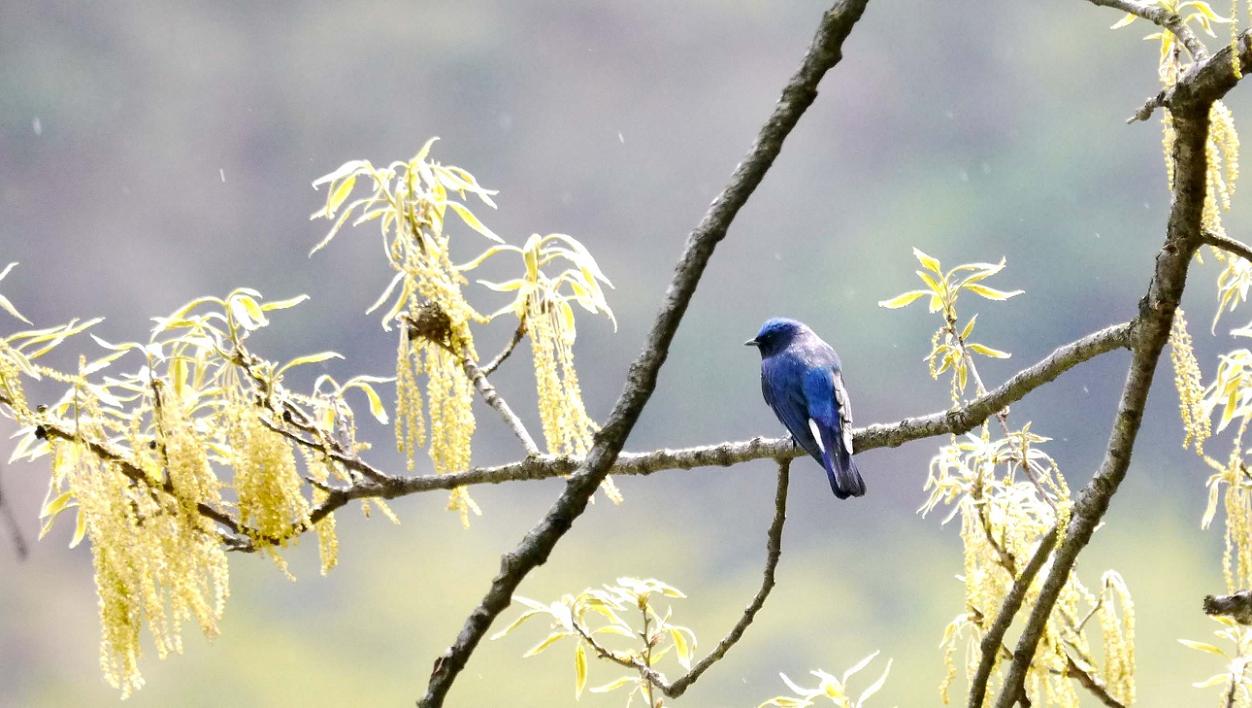 クロジの撮影の間、私は車の出入りの監視役。そこに登場してくれたのがオオルリ君でした。昨日は二羽でバトルを繰り広げていましたが、今日は一羽が囀りながら巡回、もう一羽は無言で同じコースを舞っています。少しずつ縄張りが決まっている気配が伺えます