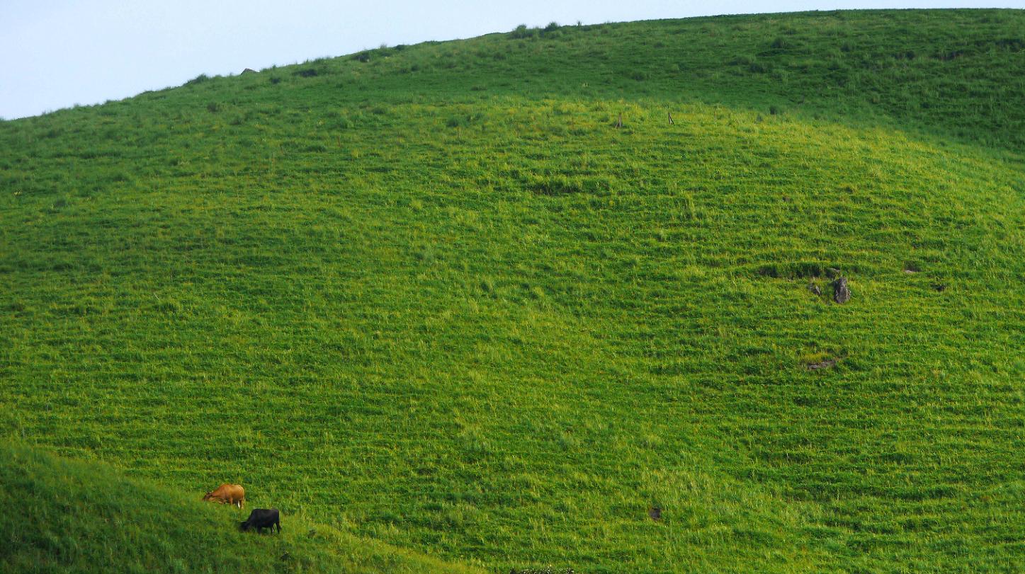 高原にはさわやかな風が吹き抜けます。牛があちらこちらに・・