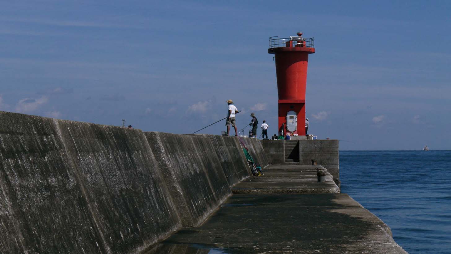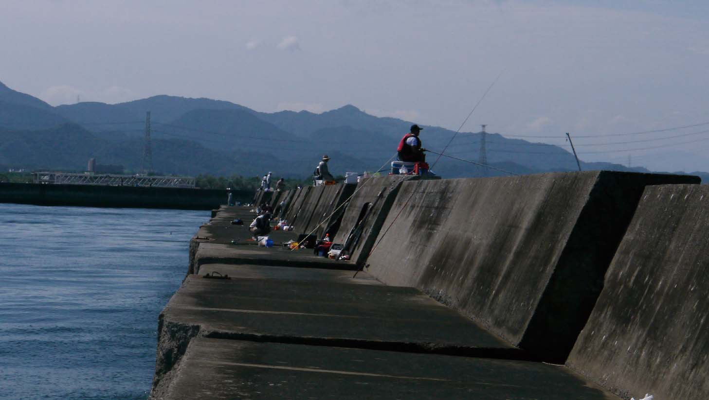 沖の一文字、地側の釣り人たち