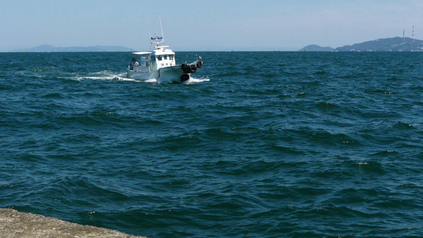 おりしも台風15号の通過後で、湾内を始め海の所々に大きな流木が浮いています。台風前までは29度もの海水温度でしたが、通過後の今日は23度台まで下がっているとか・・・ここ10日間程度の出来事と、船長が言ってました。