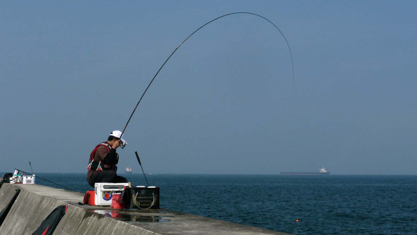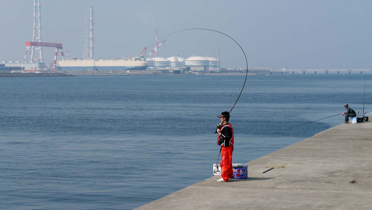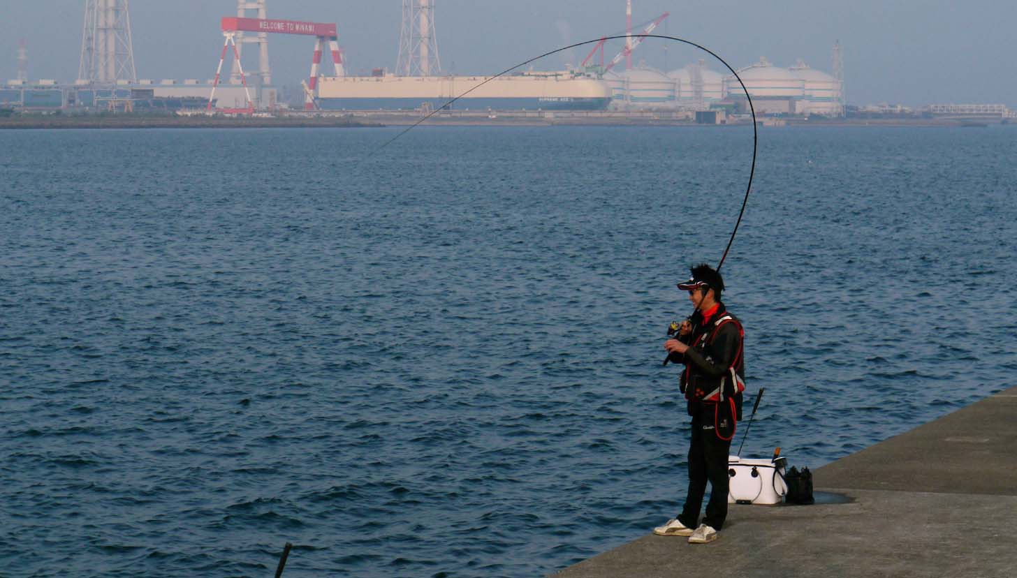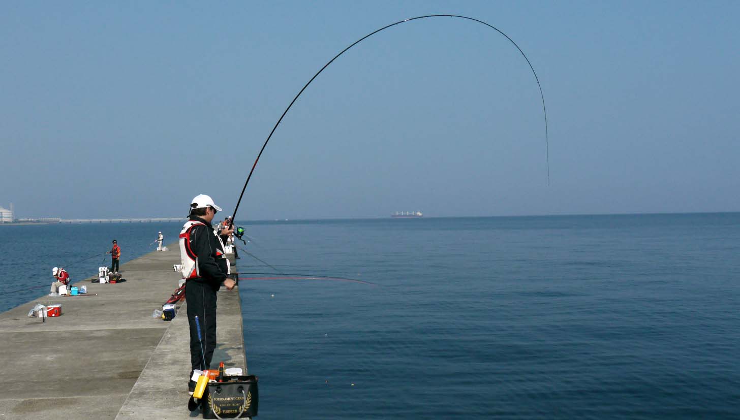 トビエイ釣りの竿曲げ カンダイ釣りの竿曲げ