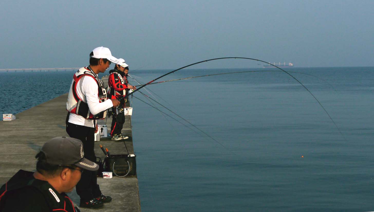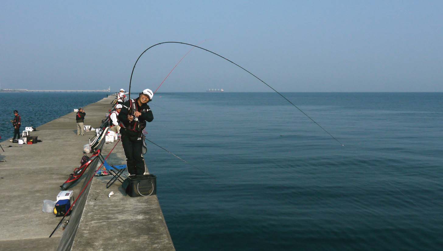 グレやチヌ釣りでは、細い糸をかばいながら大型の取り込みをします。この時に竿の弾力と道糸の弾力を最大限発揮させ、魚には強く引かれる感覚と引かれない感覚とが、交互に現れない様に引き寄せるのが良い方法です。