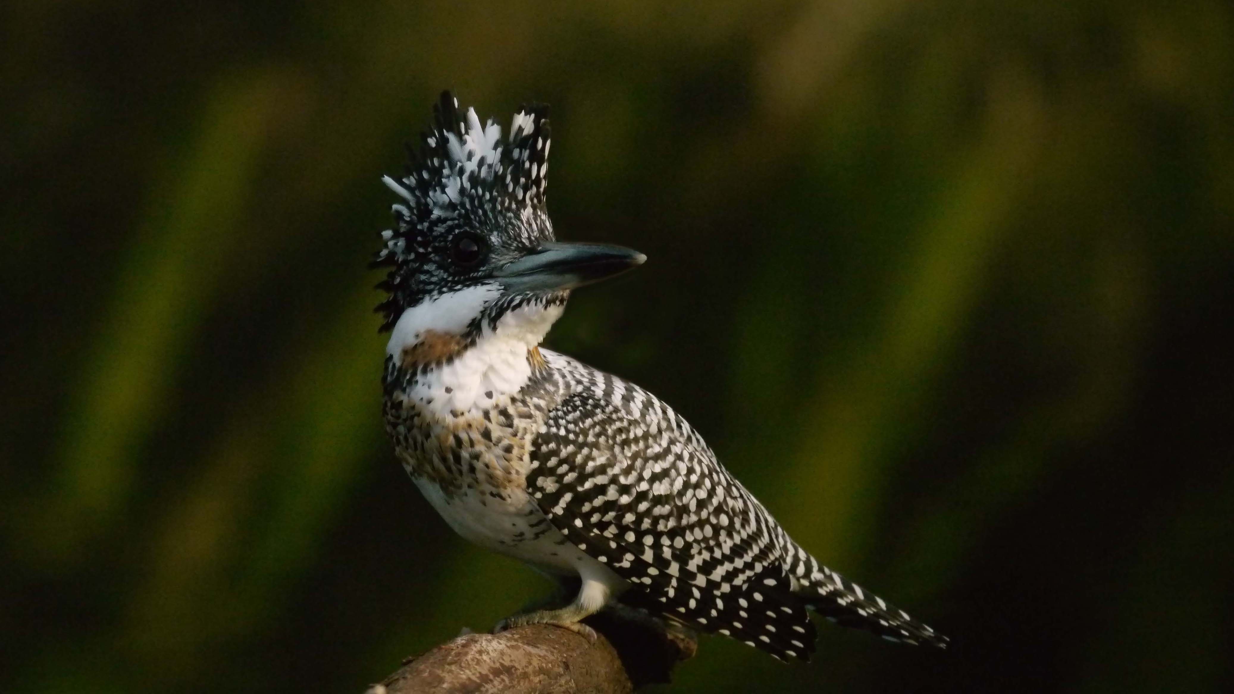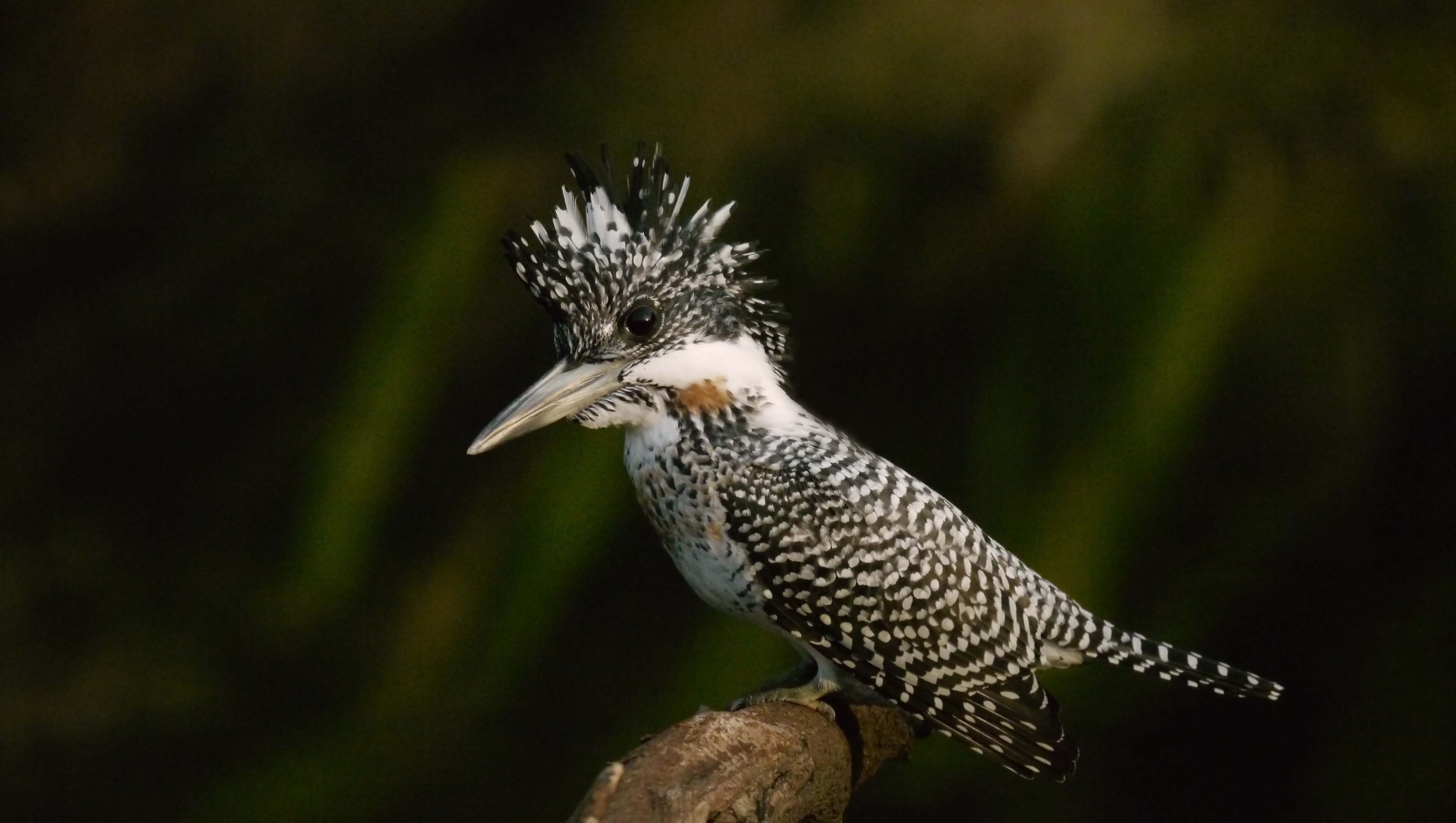 近付いてきたのでカメラの電源ON。ヤマセミがいつもの様に通過・・・かと思いきや、Uターンして目の前の止まり木に。その距離5m弱、ルミックスの100~300mmのテレ端では全く入りません。