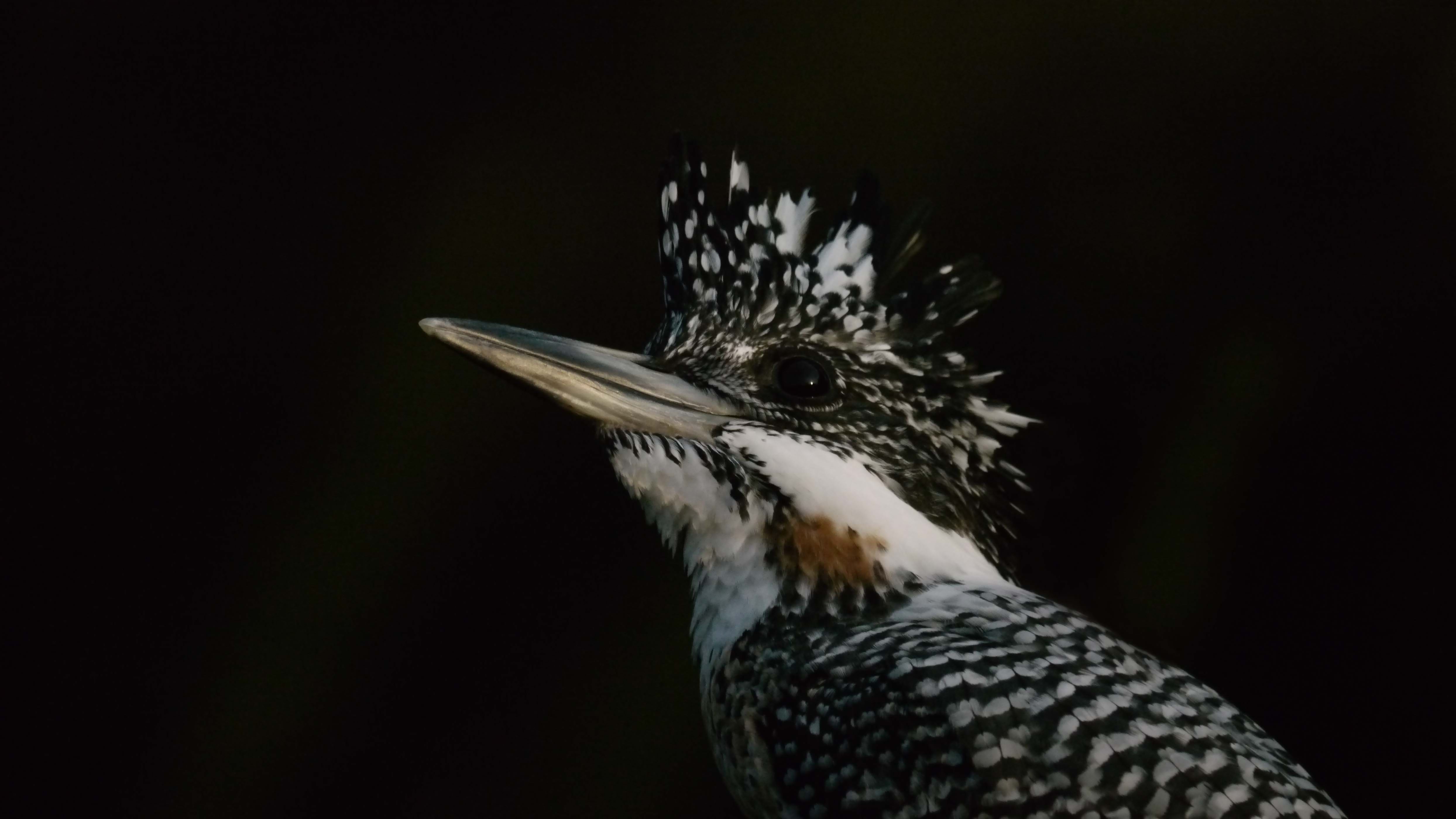 三脚とレリーズを使っており、ピントはオートですが、カメラ後方のタッチパネルで、ピント位置をヤマセミの目に移動させて撮りました。カメラレンズの先端は、ネットの内側に20cmほど引き込んでいるので、ズーム操作や他のカメラ操作をしても、彼には感付かれません。