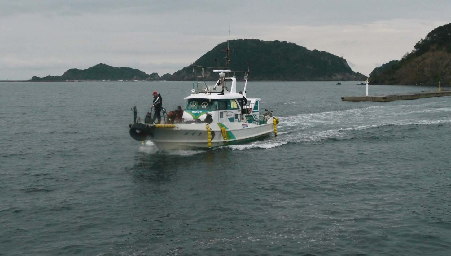 GFGの大会では、鶴見磯釣りセンターのしんえいと進栄丸の2隻を使って、大分宮崎の会員をそれぞれの磯へ下ろし、最後に渡ったのが鶴見大島の切れ波止。