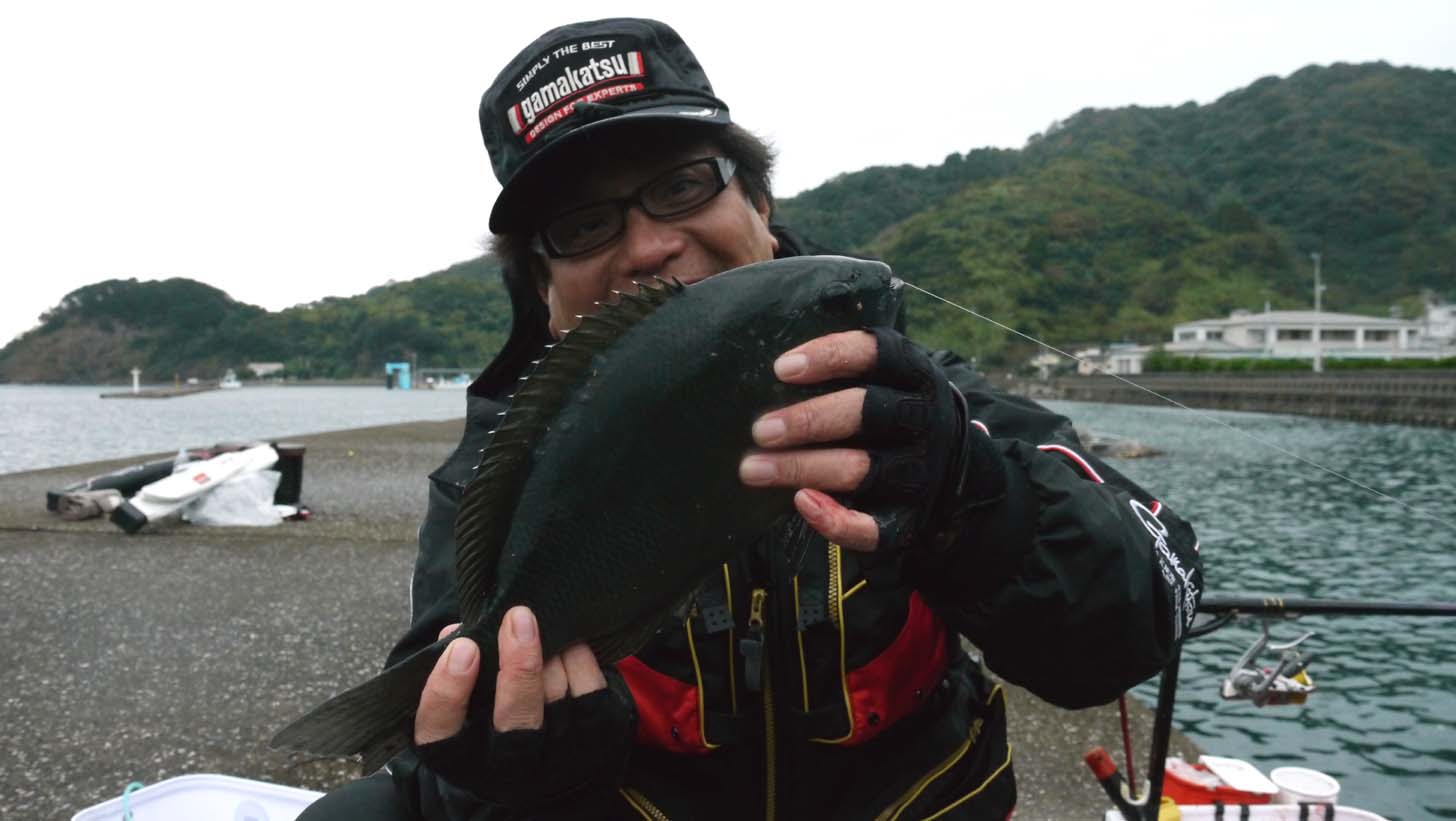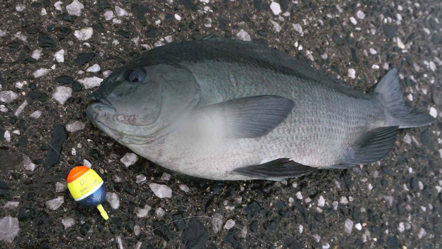 良く釣れる魚は、グレ・マダイ・チヌ・ブリ・ヒラメ・カンダイなどで、グレやチヌの大型狙いは島を向いた内向きです。今回はアジゴとタカベのエサ取りがとても少なく、釣り易い状況でした。