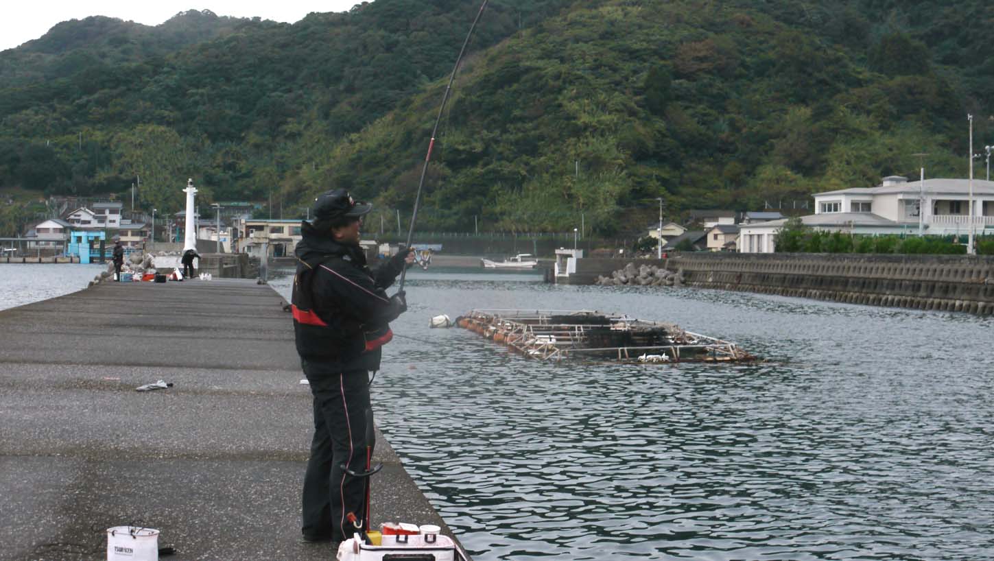 良く釣れる魚は、グレ・マダイ・チヌ・ブリ・ヒラメ・カンダイなどで、グレやチヌの大型狙いは島を向いた内向きです。今回はアジゴとタカベのエサ取りがとても少なく、釣り易い状況でした。
