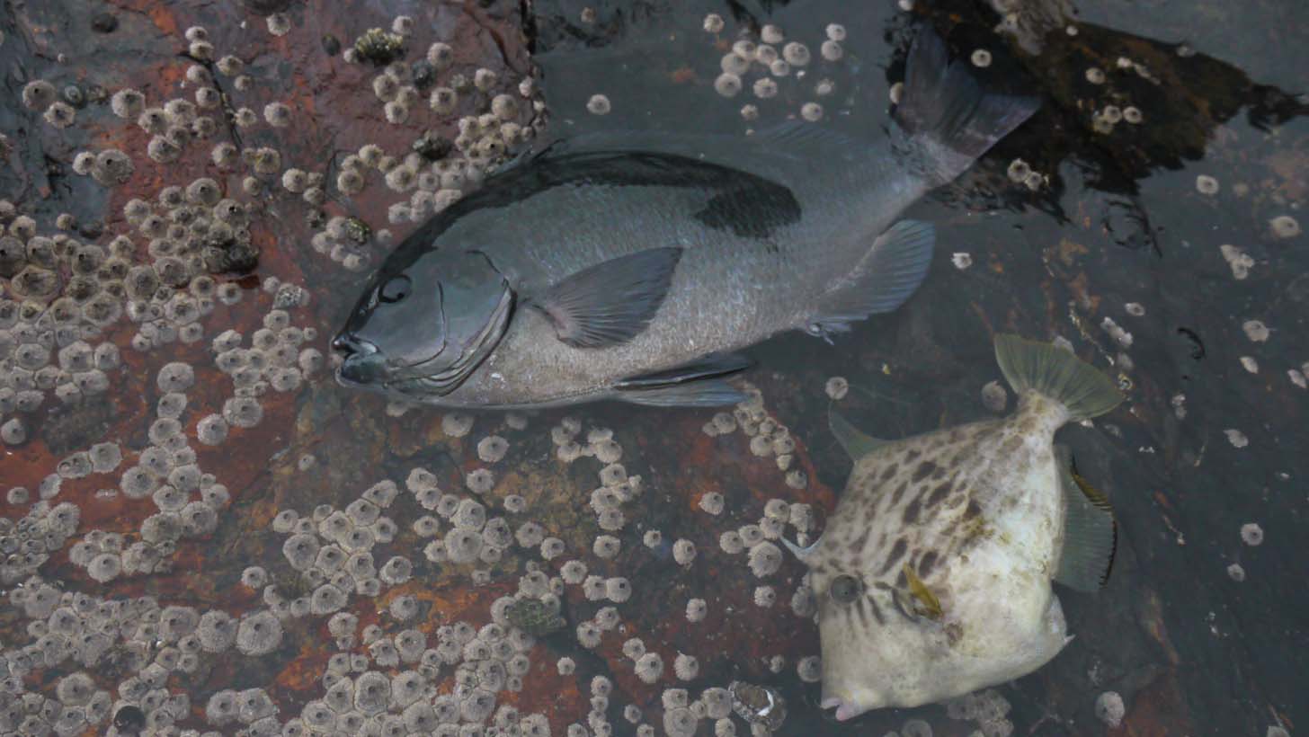 米水津の磯はキタマクラが多い所・スズメダイの場所・トウゴロウイワシが群れる所・アジゴが湧く磯・クロホシイシモチが沢山出る場所など、磯によってエサ取りの種類が違っています。