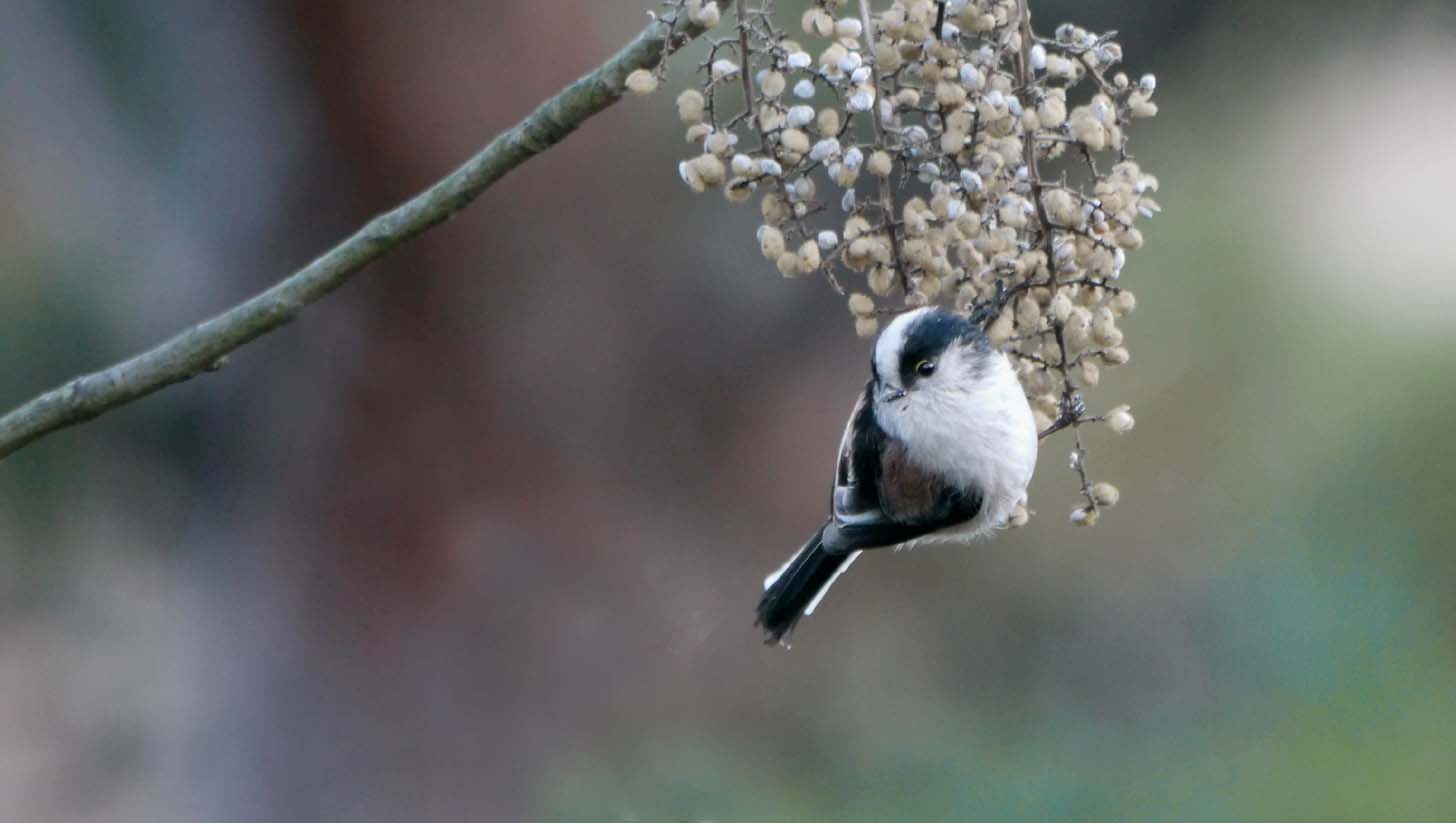 ハゼの実を啄ばみに来たエナガ