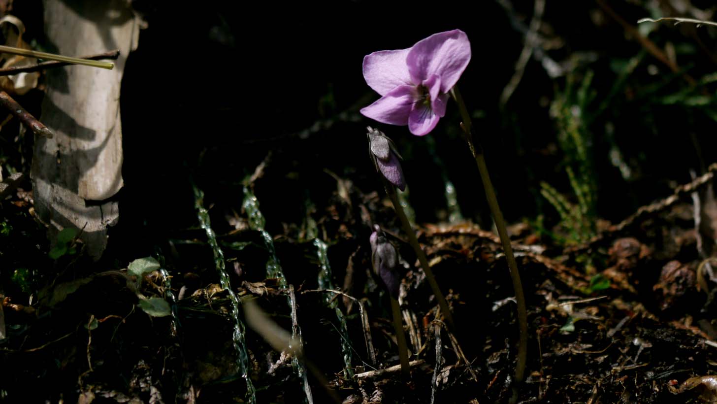 その近くにアケボノスミレ、花が先で葉っぱは後から