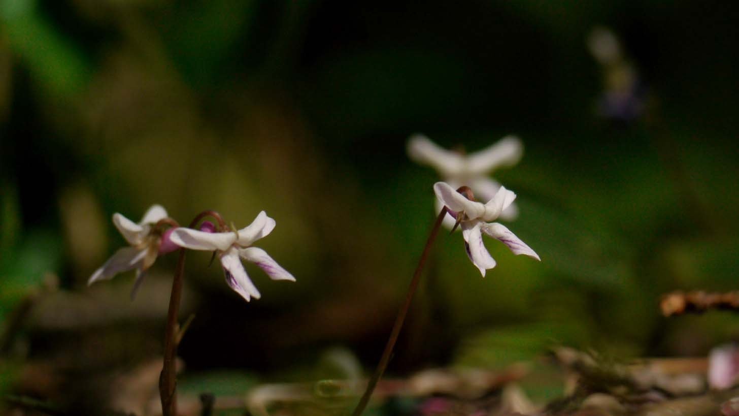 花は白くてすごく小さく、普通のスミレの花弁一枚分の大きさです。