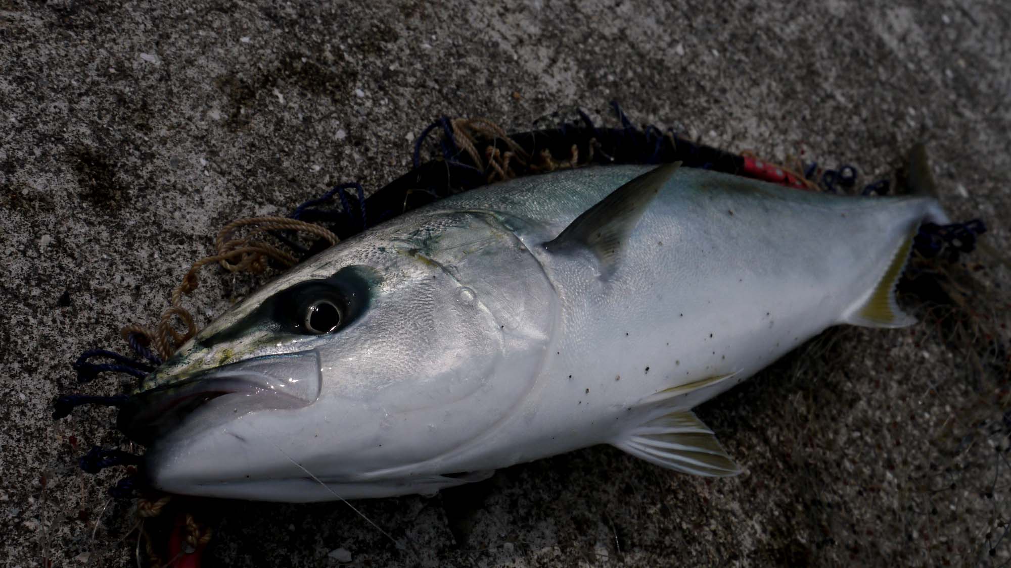 9時30分頃には北東の風に変わったので、沖向きを諦めて内側に釣り座を構えます。しかしながら内向きはアジゴの猛攻に撃沈。釣れたアジゴを泳がせて、50㎝級のヤズ(ブリの小型)を仕留めるのが精一杯。