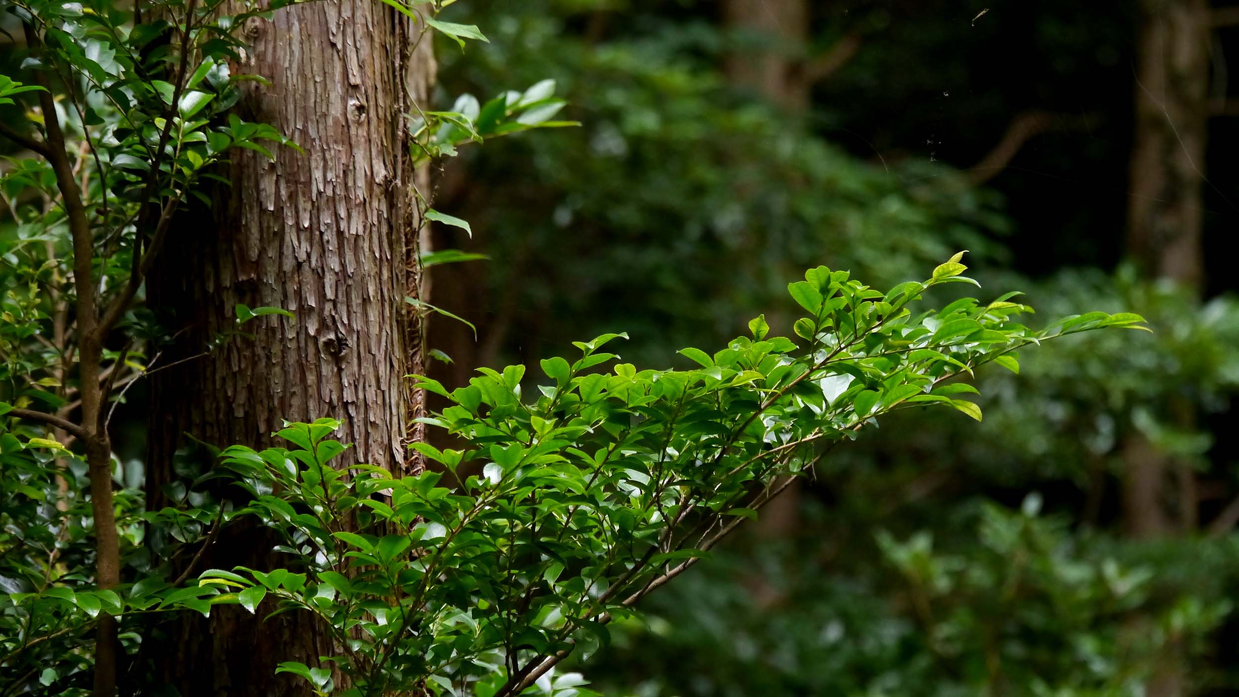 子供の頃に植えた杉は、50年近くにもなると立派です。その杉山の中で、お盆を前にお墓などに供えるヒサカキを採取、50本ほど集めて終了。