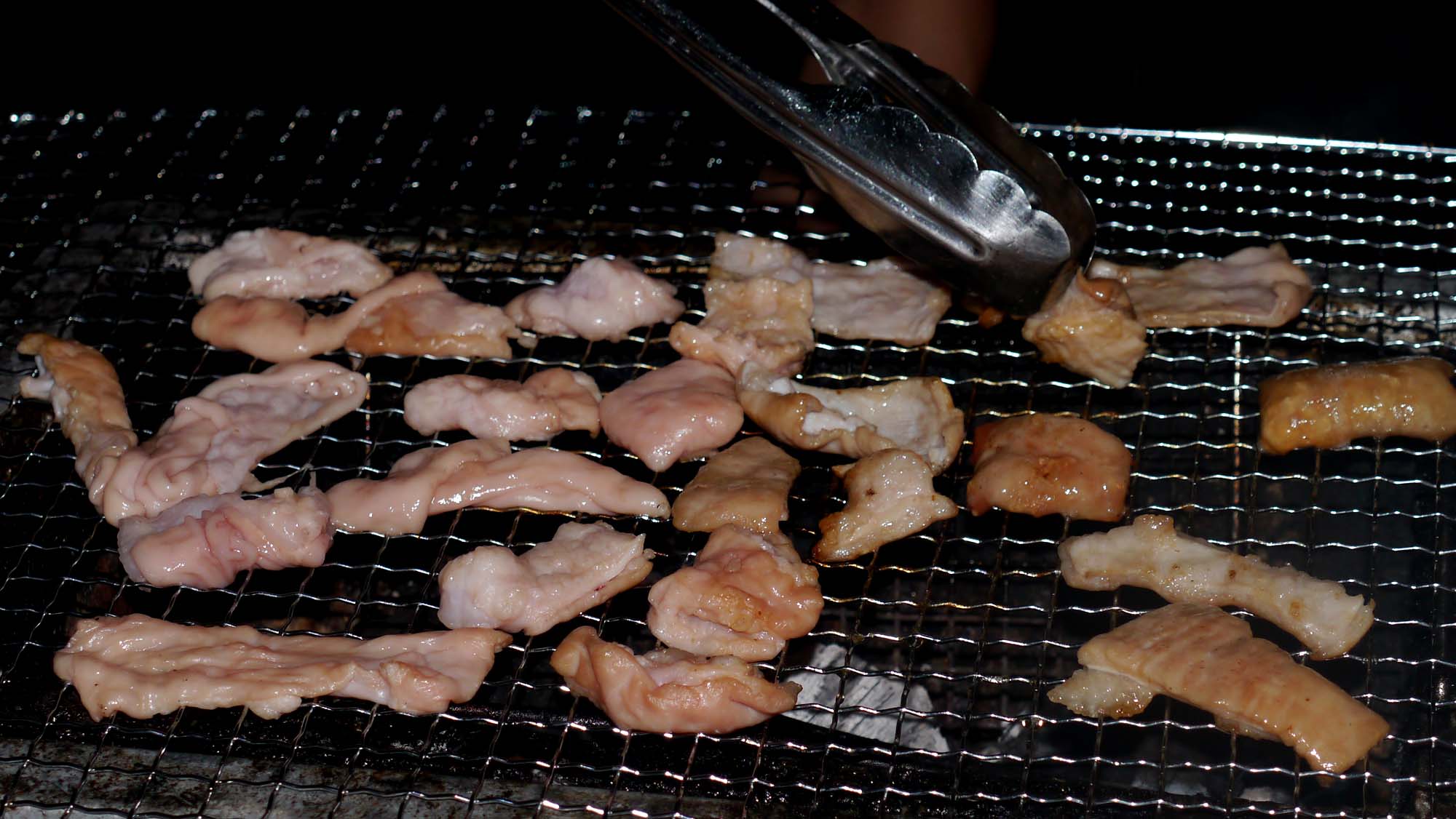 美味しいサラダ・鶏肉・ホルモン・猪のスペアリブ・アユ・カキなど、6.5人?で23時30分まで掛って食べまくり呑みまくりました。