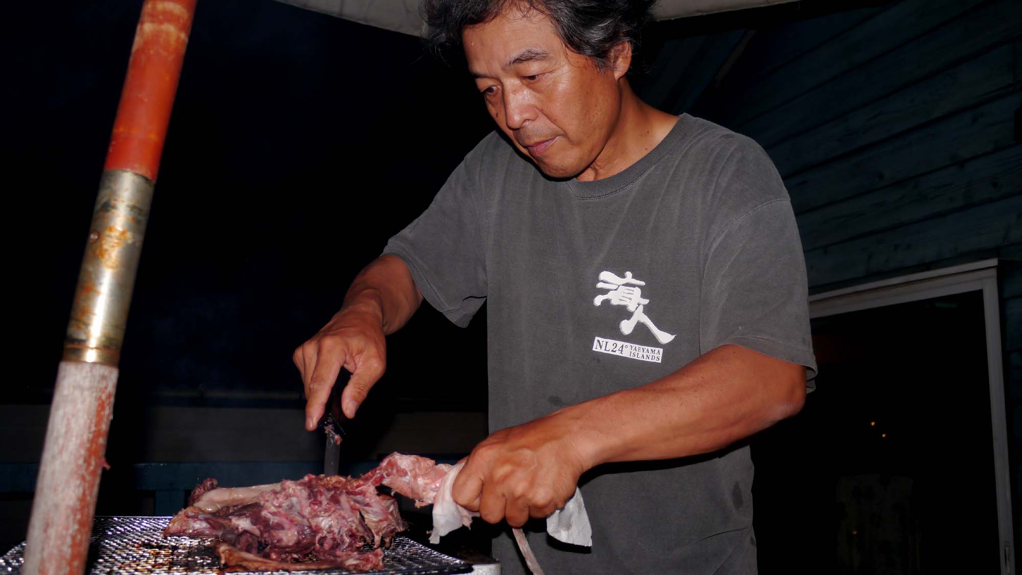 山の神から調達したシシのアバラ解体