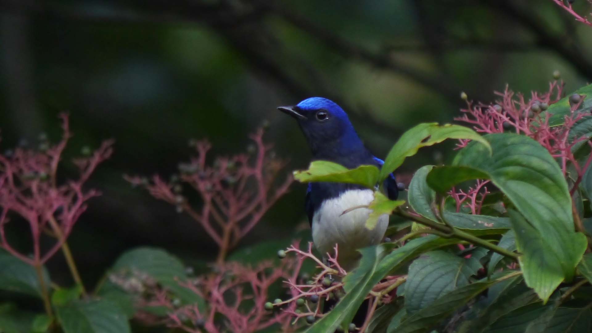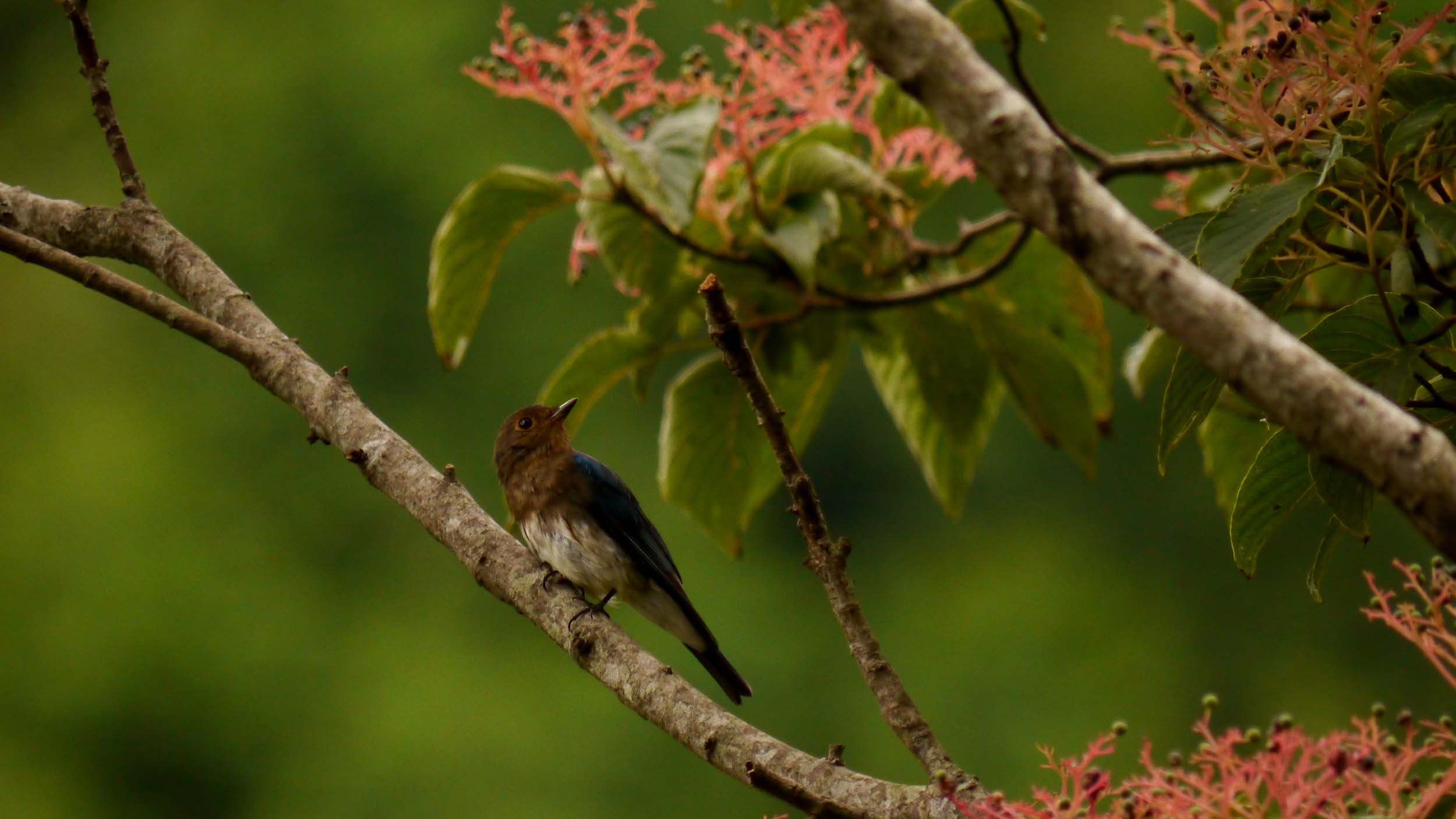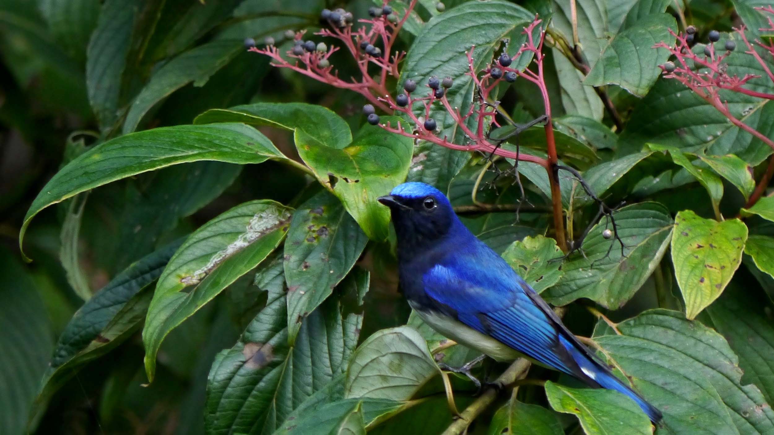 夏鳥のオオルリやキビタキなどが、クマノミズキやアカメガシワの実を啄みながら、南の国へと移動中です。
