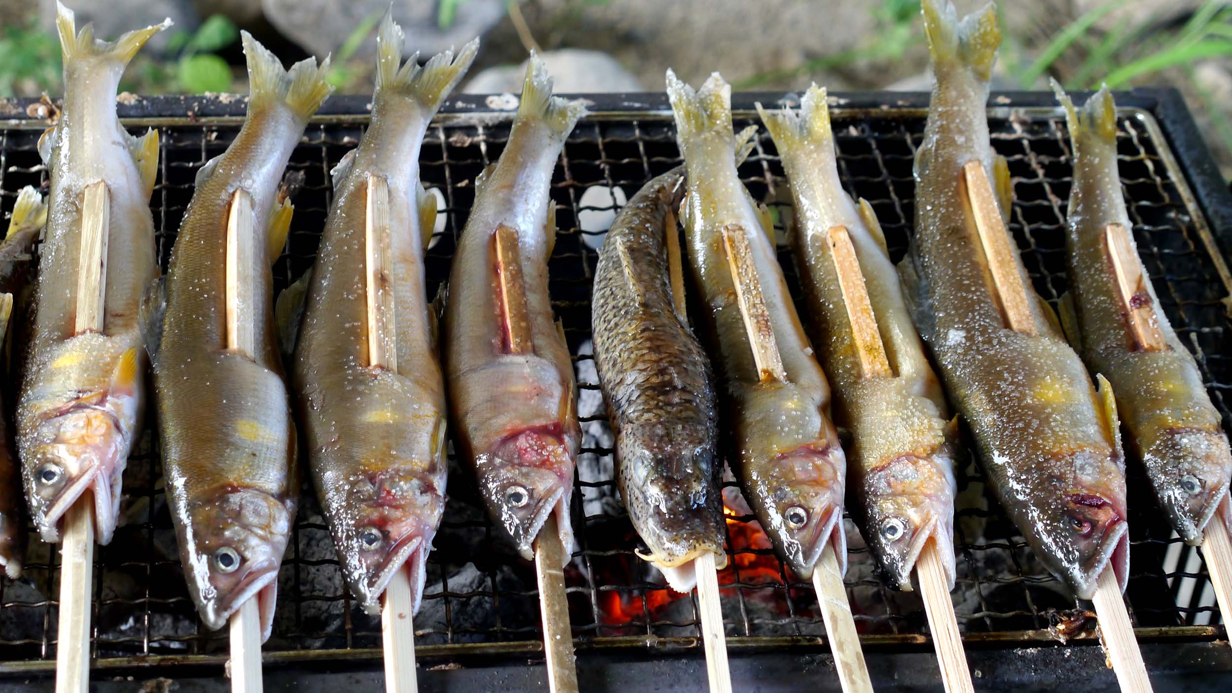 アユやカマツカは塩焼き
