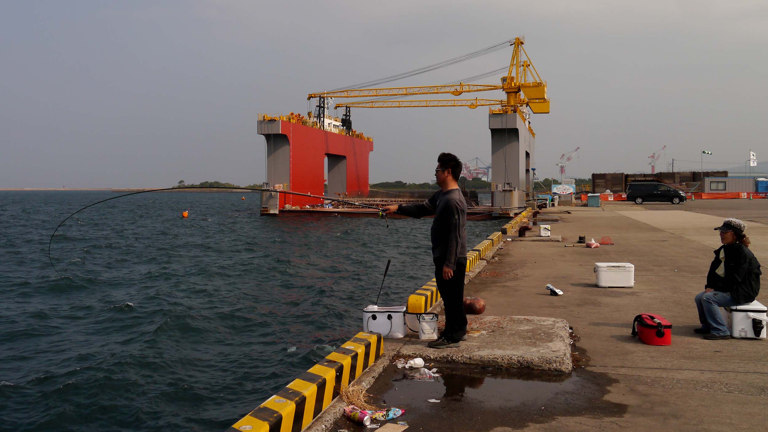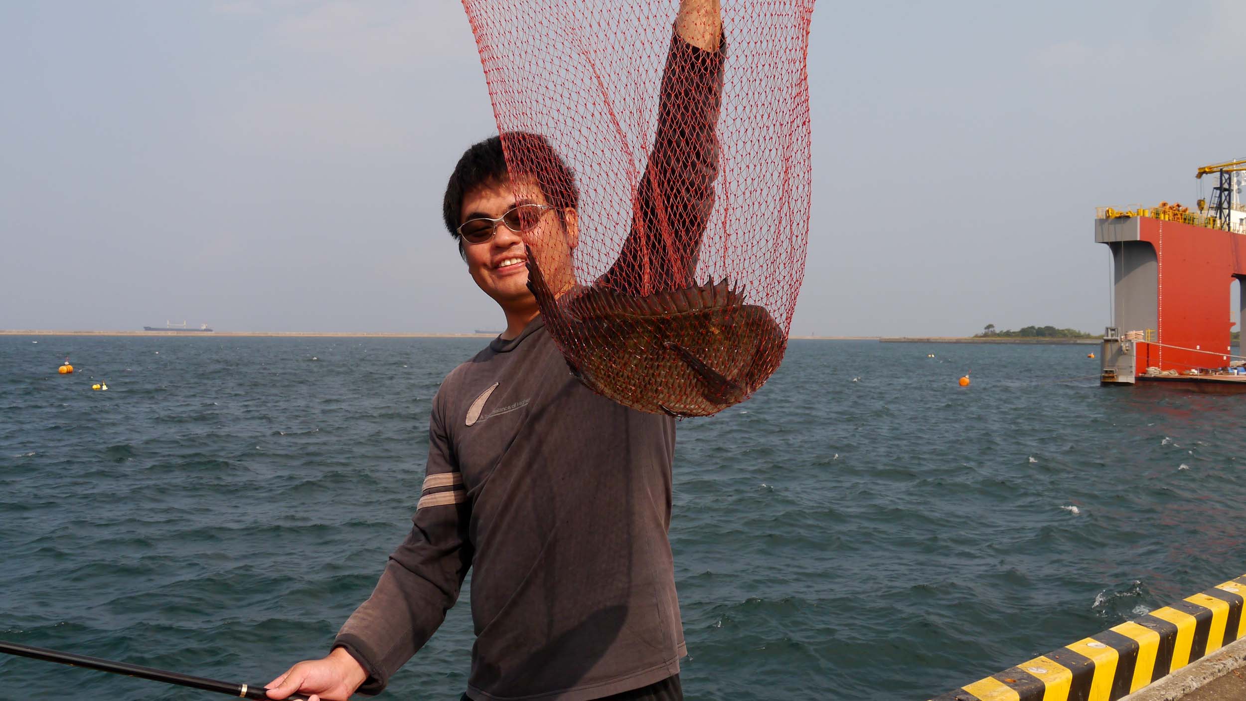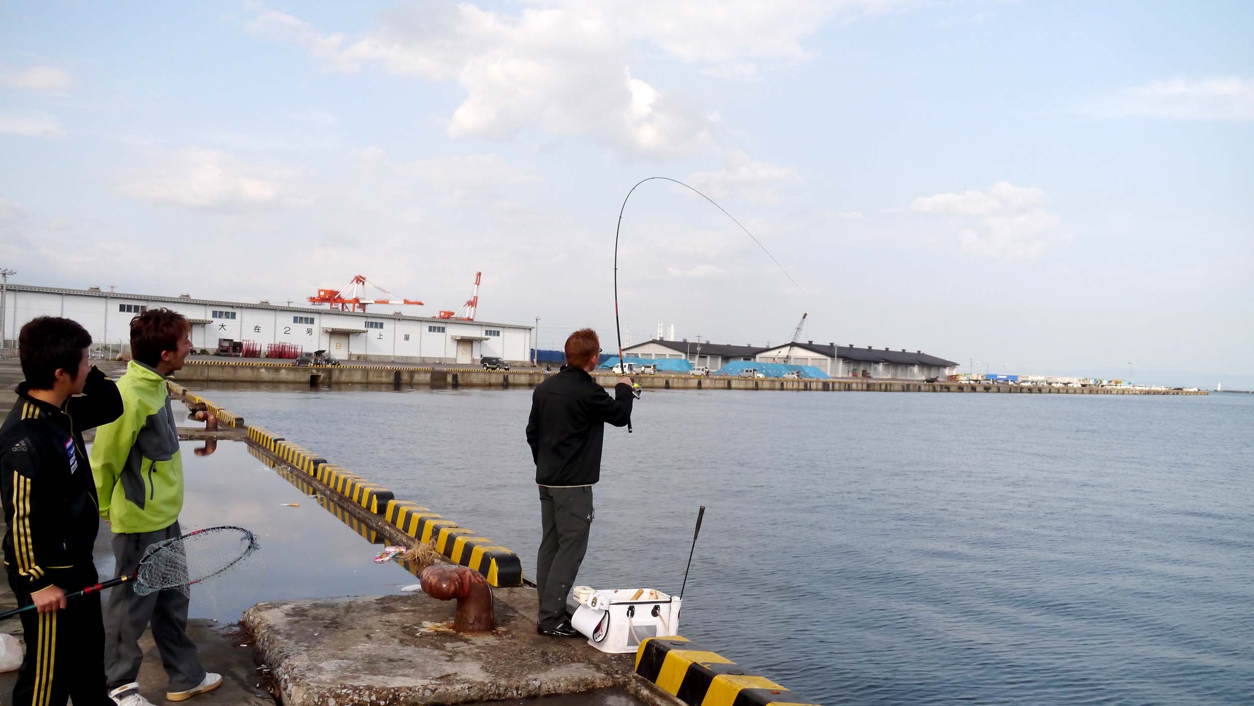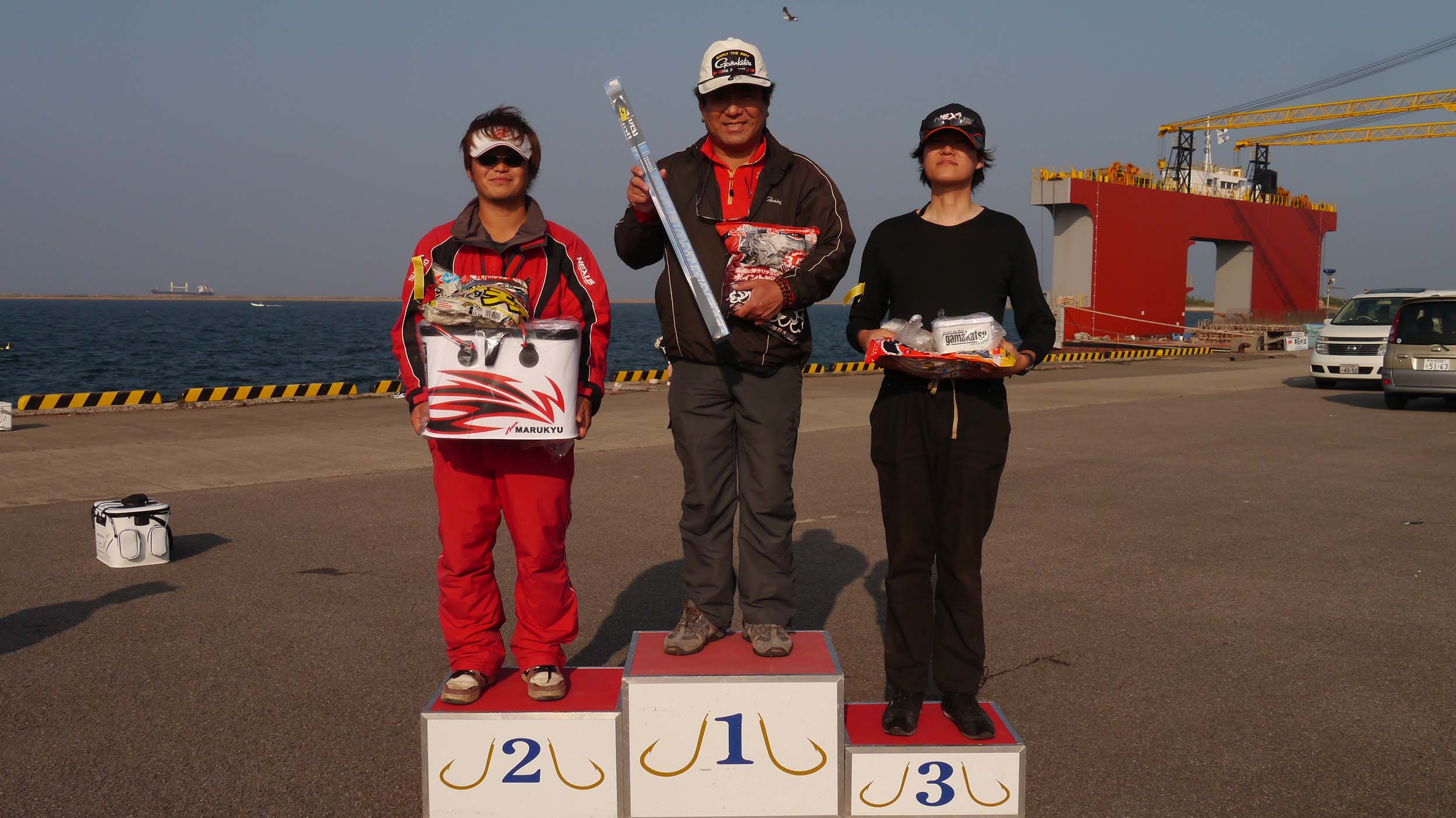 28日の波止釣り講座は、ミニ大会も兼ねています。場所は講座を行った、船着き場を中心に、砂置き場や大在埠頭の先端などを使いました。
