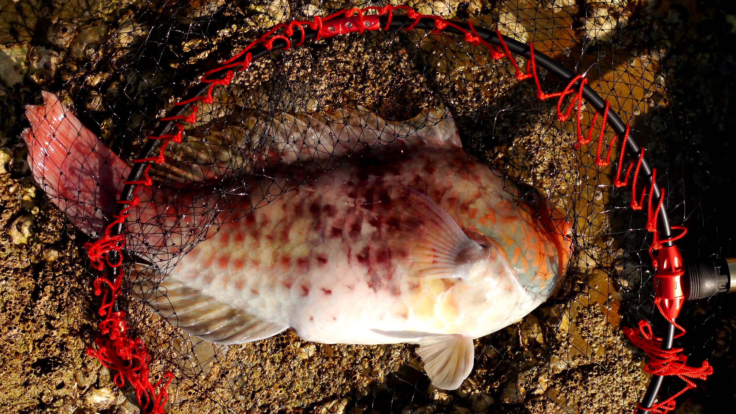 それでも小型ハマフエフキやアカハタをキープ、狙っていたブダイもゲット。残りは1魚種ですが、カワハギは25scmに届かず、キビナゴで釣ったカサゴも24㎝。納竿の15時を迎えてしまったのです。