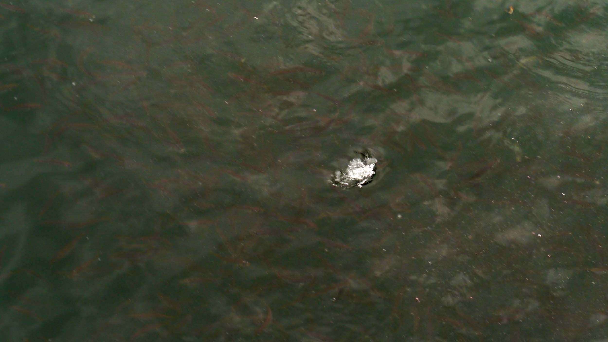 その後はアタリも出ず、撒き続けるマキエにスズメダイやアジゴの大群が集まったままで、20~30m沖までアジゴが出て行きます。11時過ぎまで、マキエを打ちながら泳がせ釣りをやりましたが、天敵の居ない平和な海は続きました。