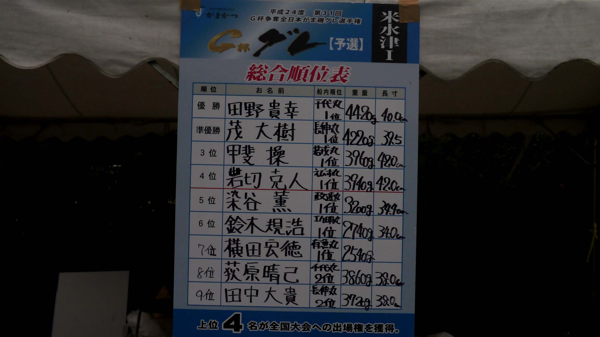 本日開催された、第31回G杯グレの米水津Ⅰでの結果です。