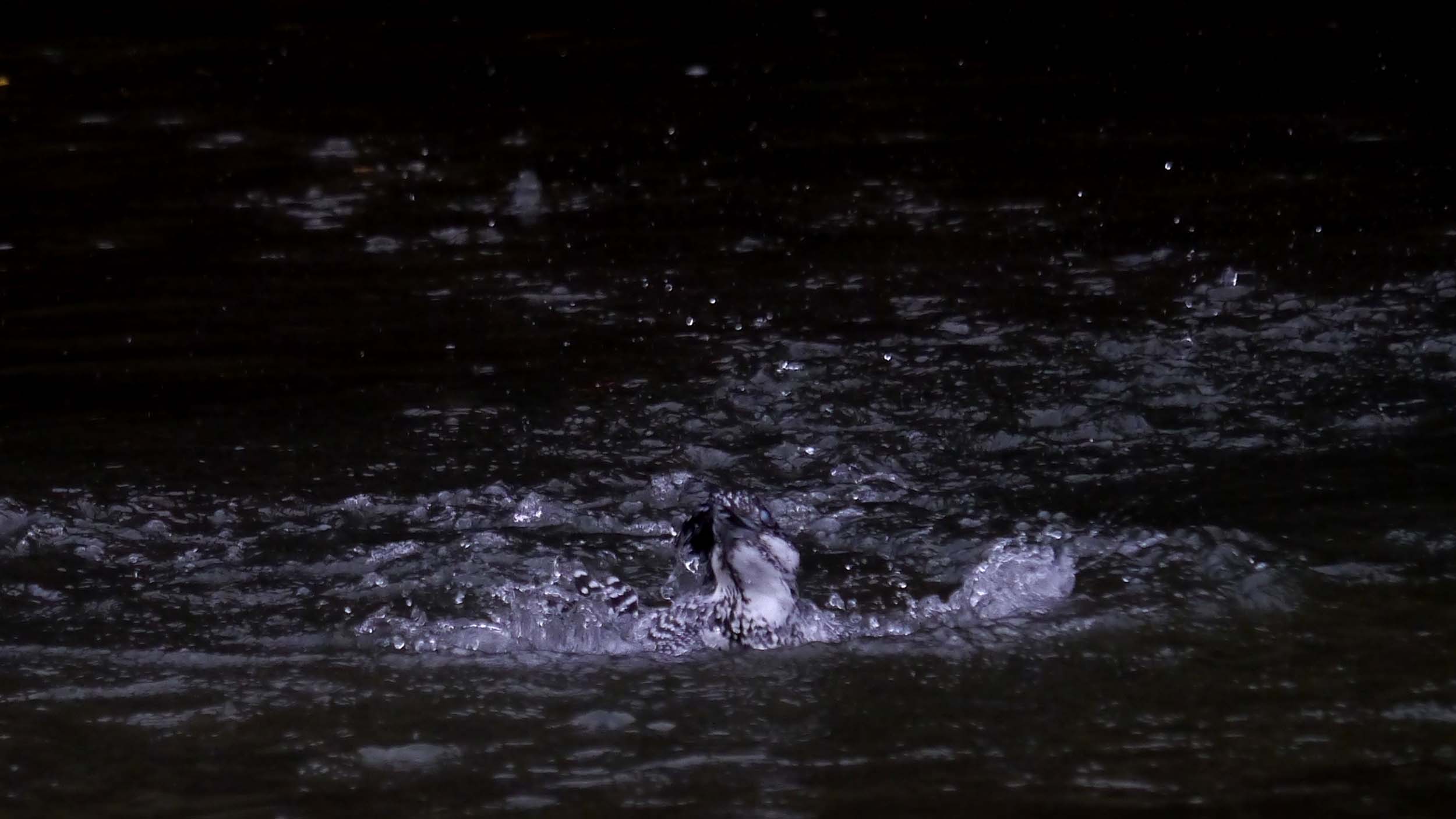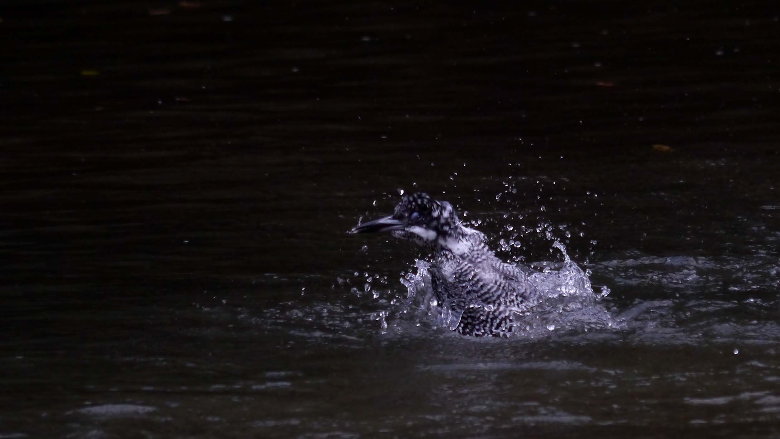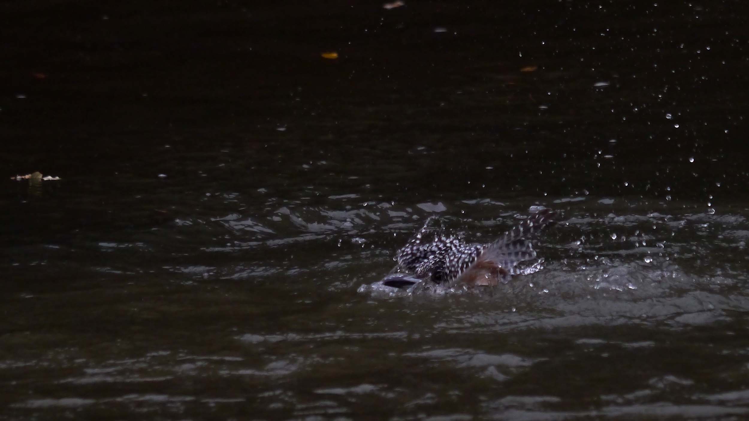 飛び込んで魚を捕らえますが、泳ぎも達者。