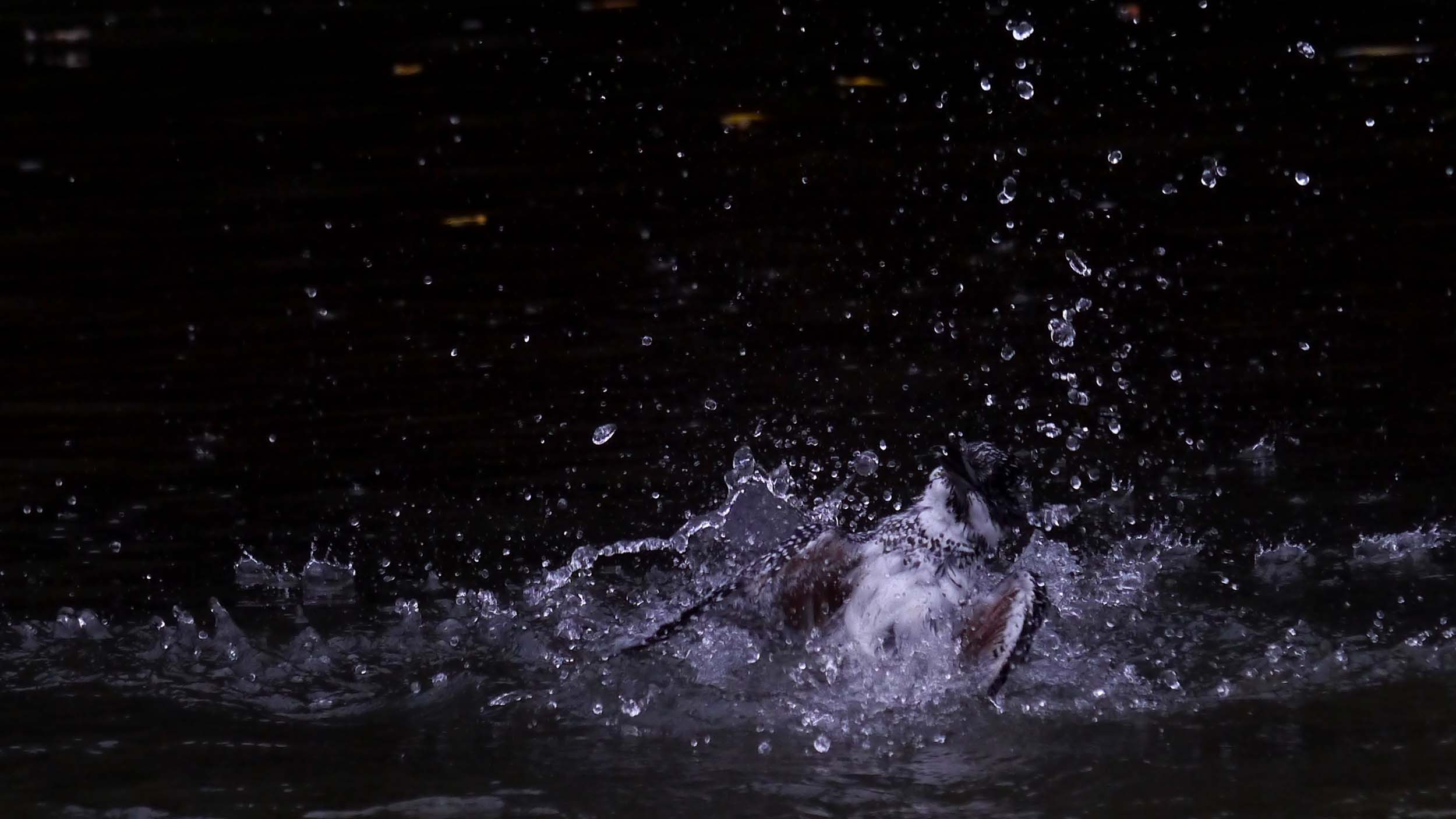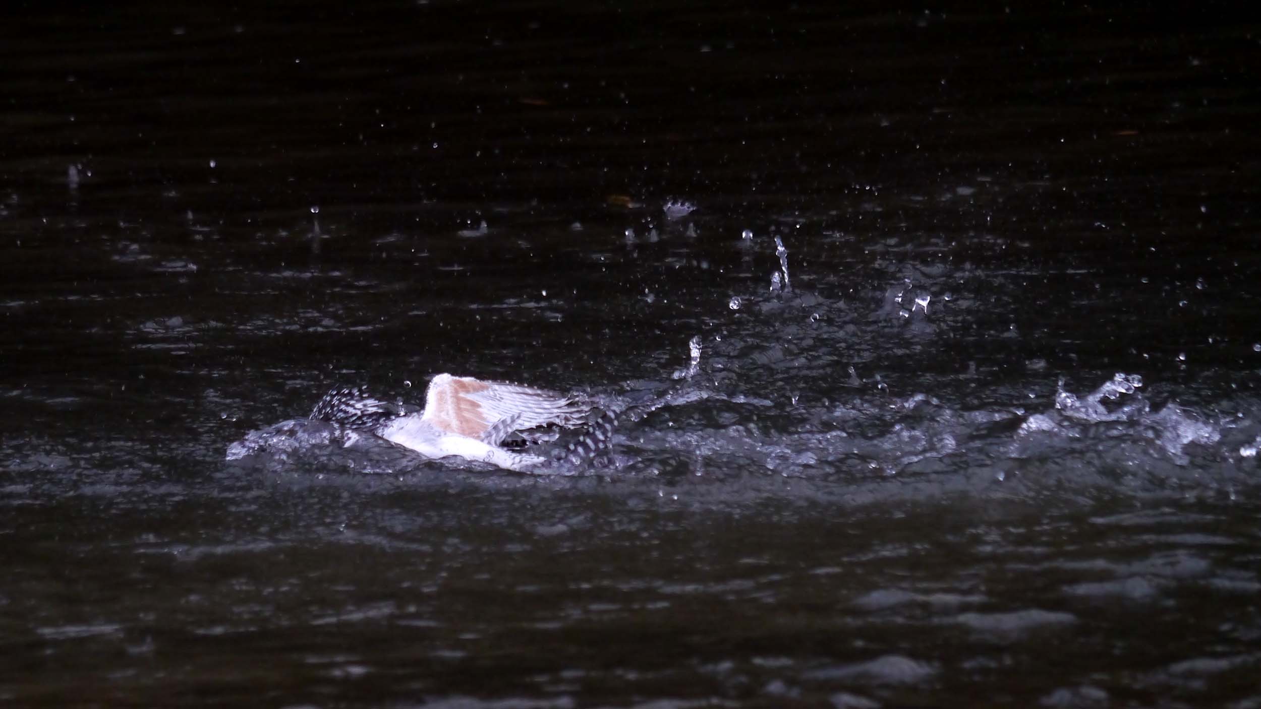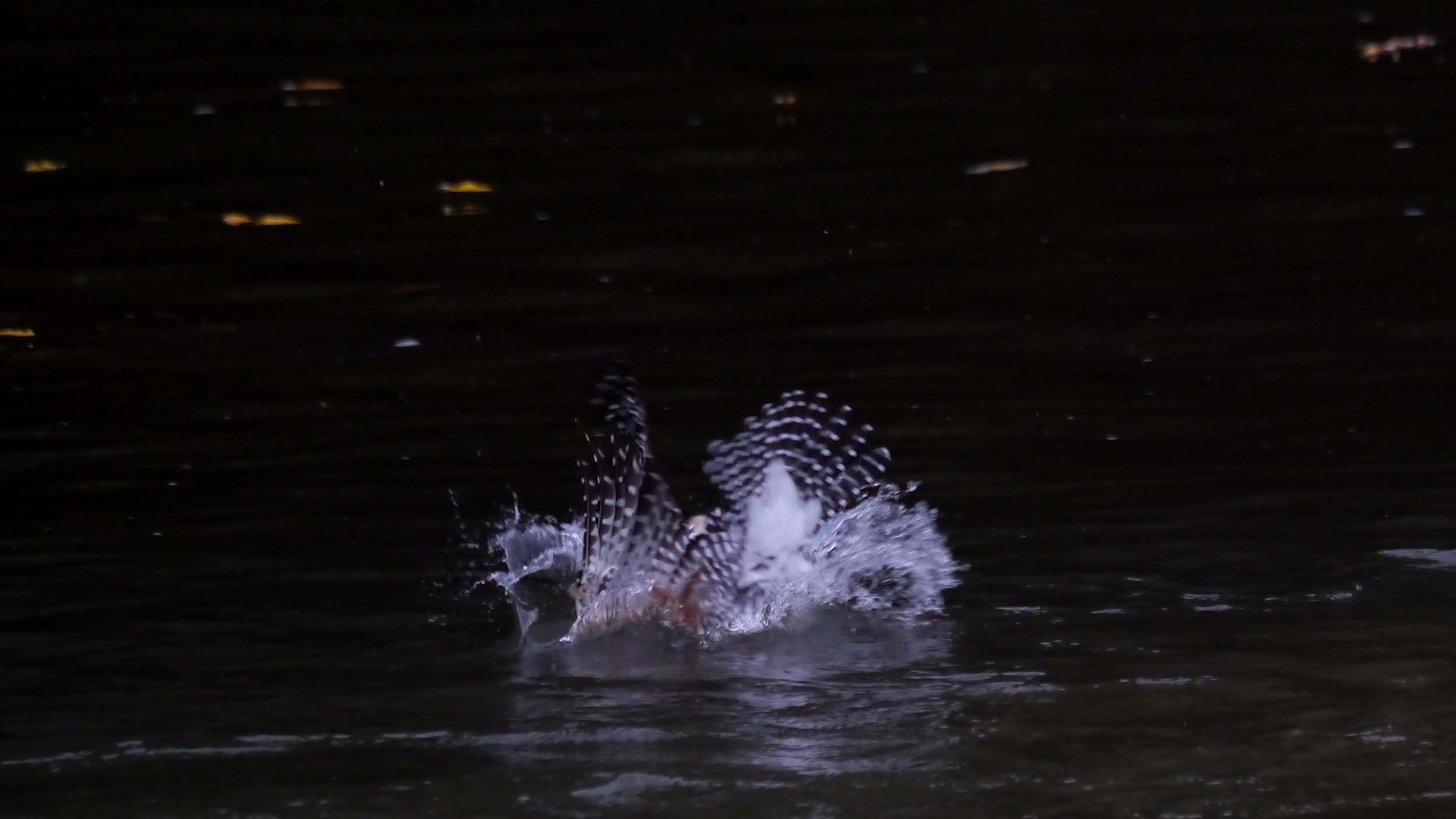 飛び込んで魚を捕らえますが、泳ぎも達者。