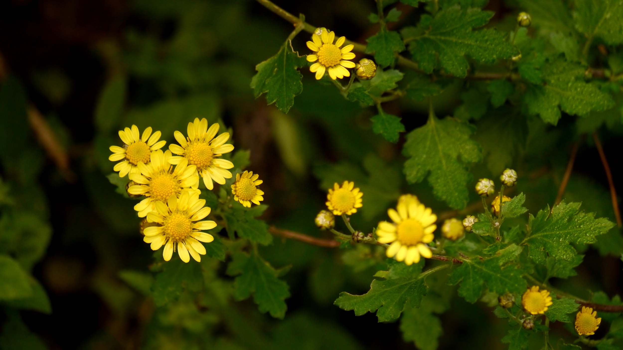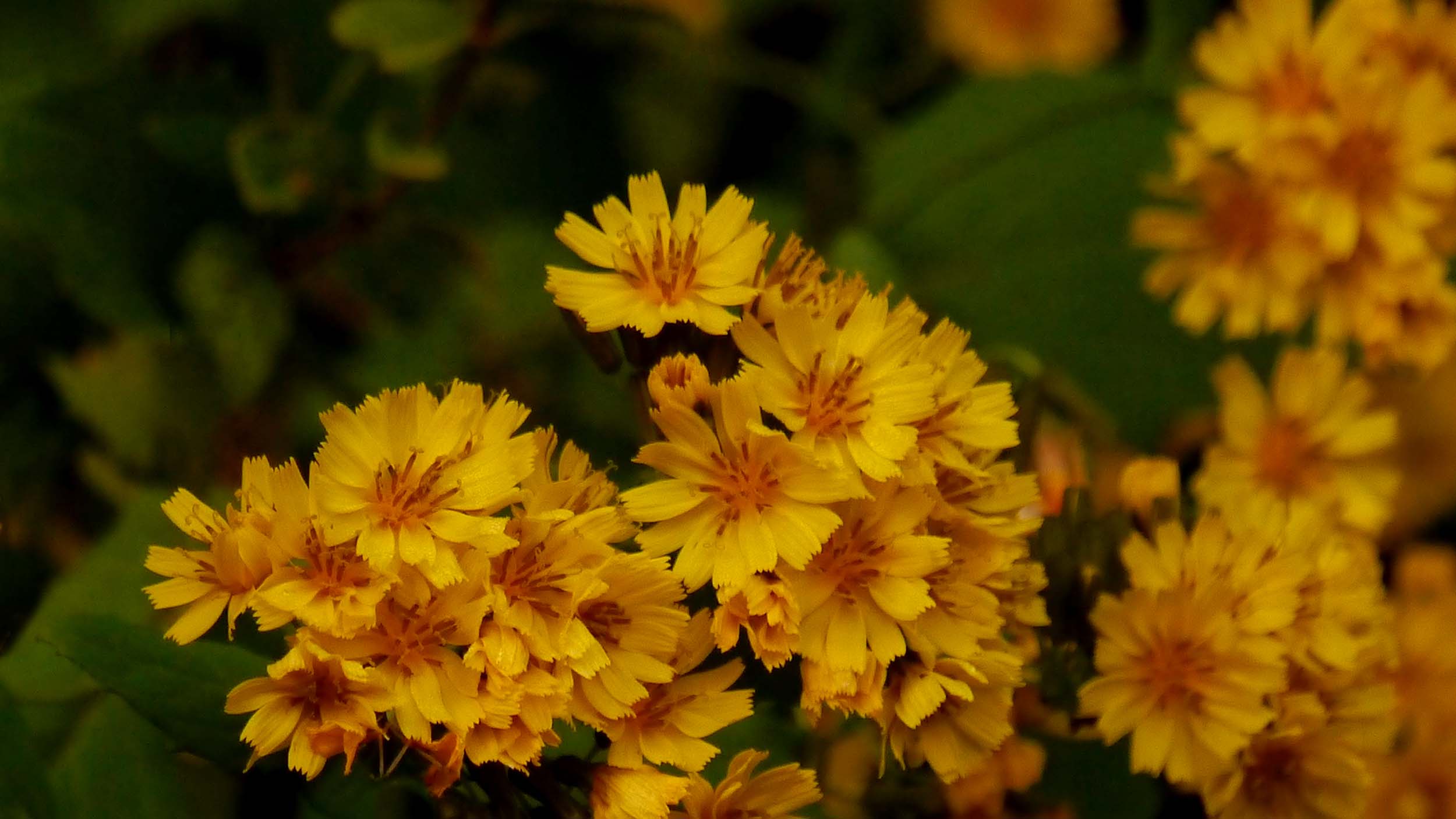 野山の斜面などでは、菊科と思われる黄色い花。