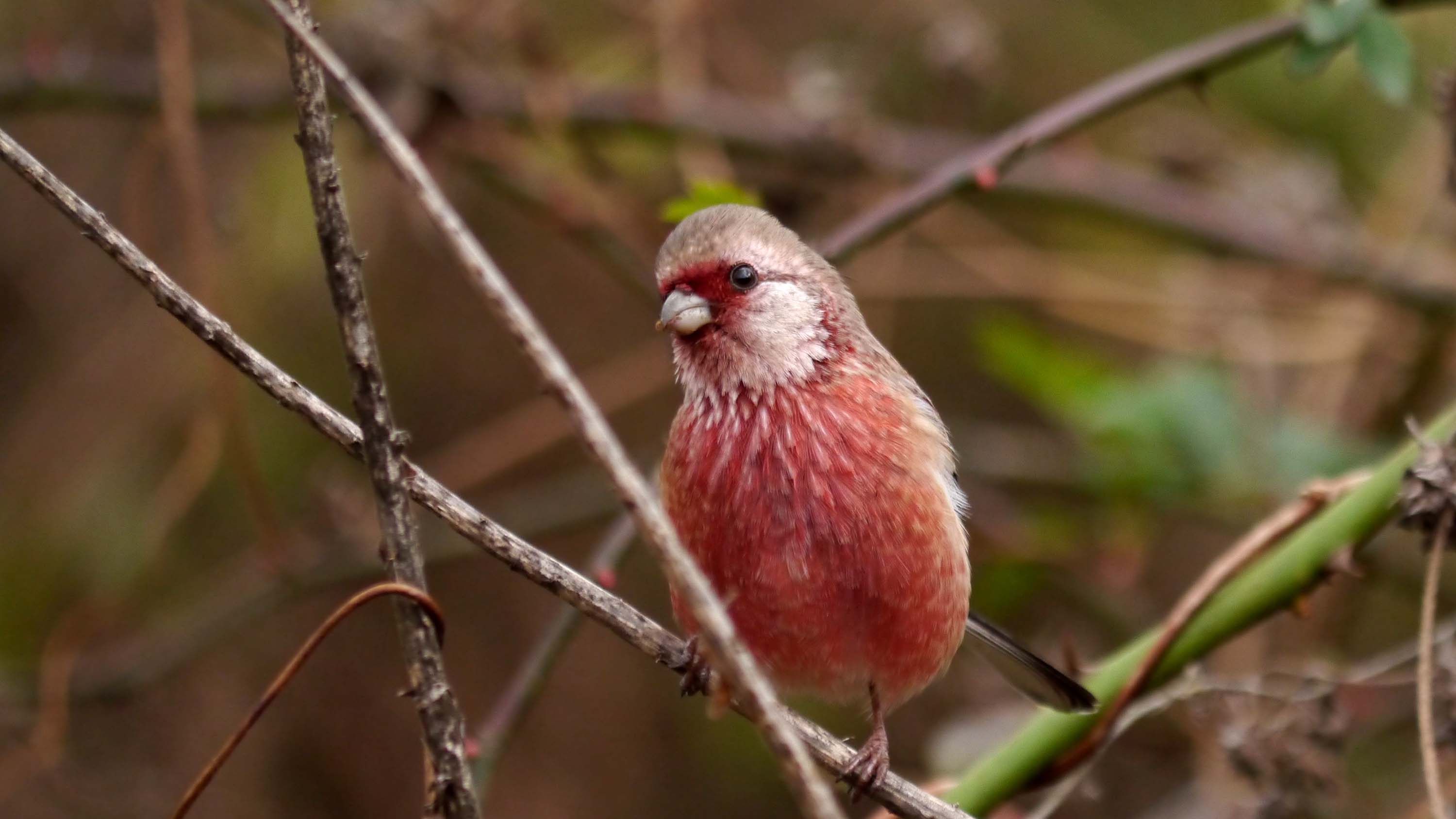 初めて見る紅色の小鳥、もっと良く観察したいですね。