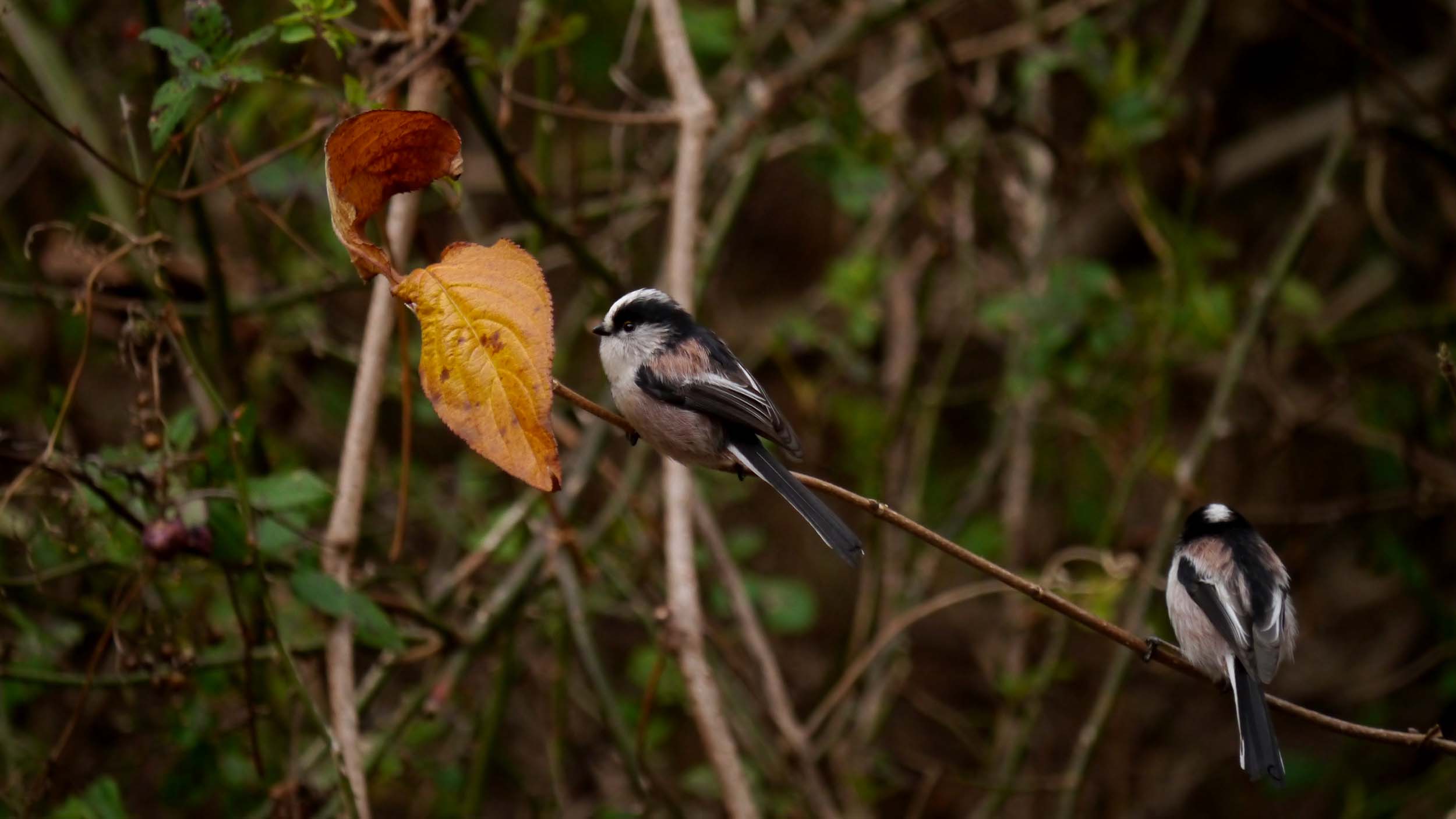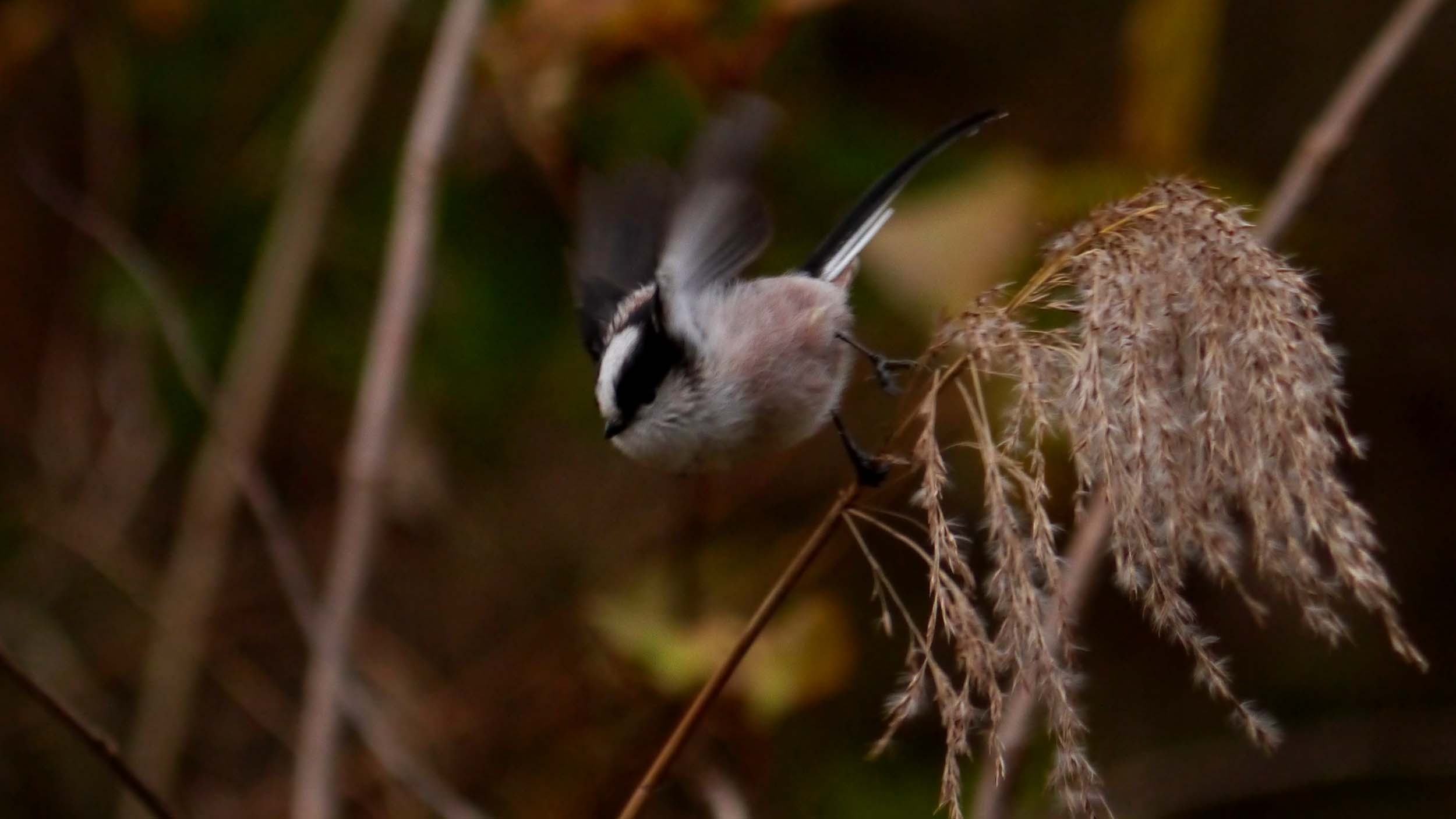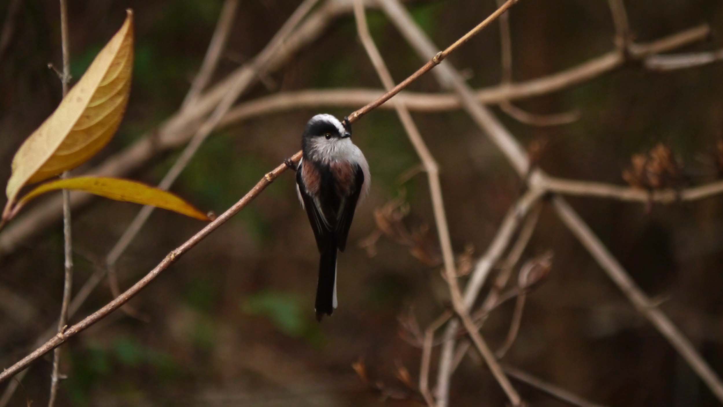 真綿にくるまれた尻尾の長い可愛い小鳥、エナガちゃんの群れは、裸の木々をせわしく動いて元気一杯です。