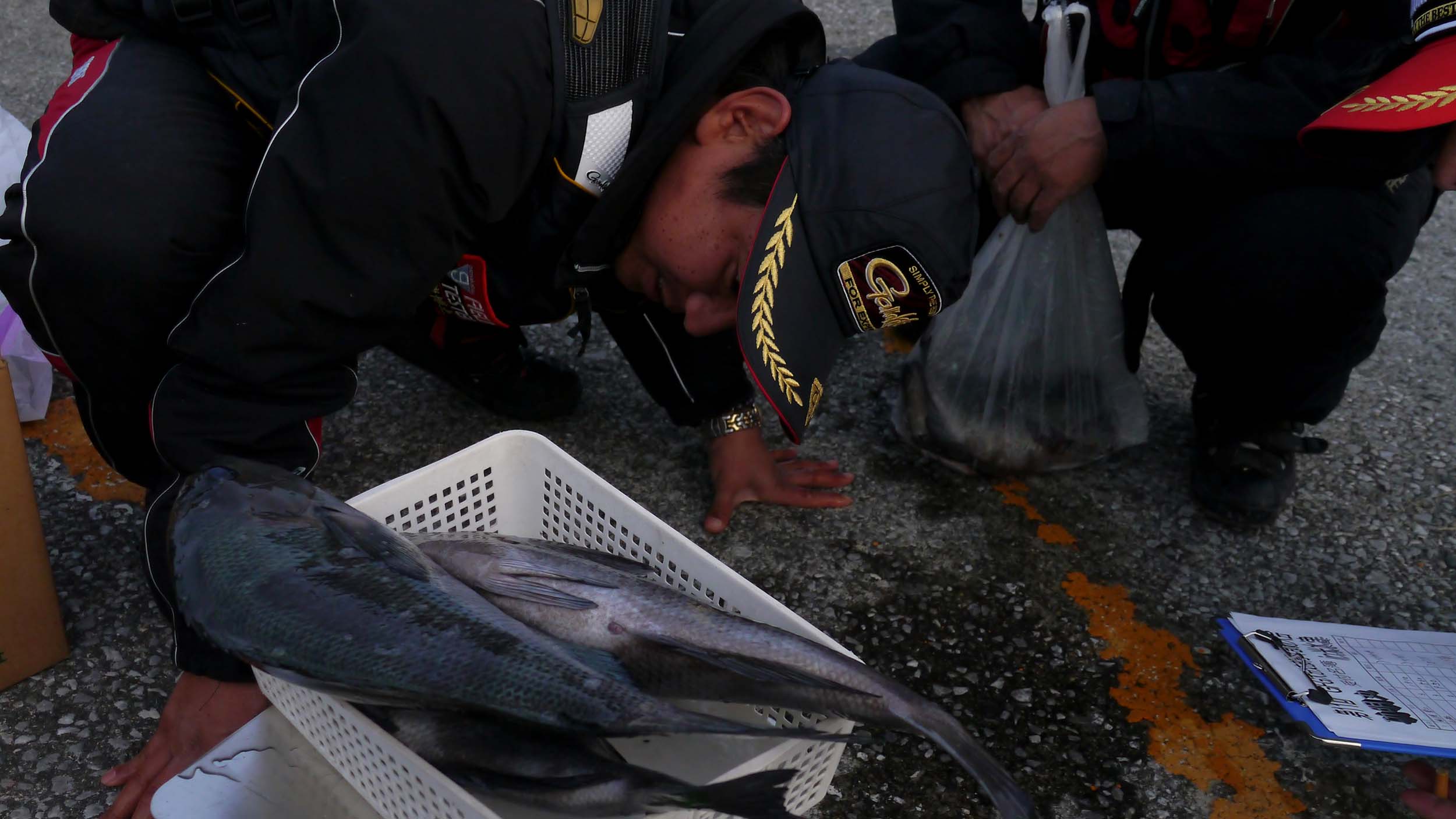 オブザーバーで参加した私は、グレの腹を出した状態で検量し3460g。