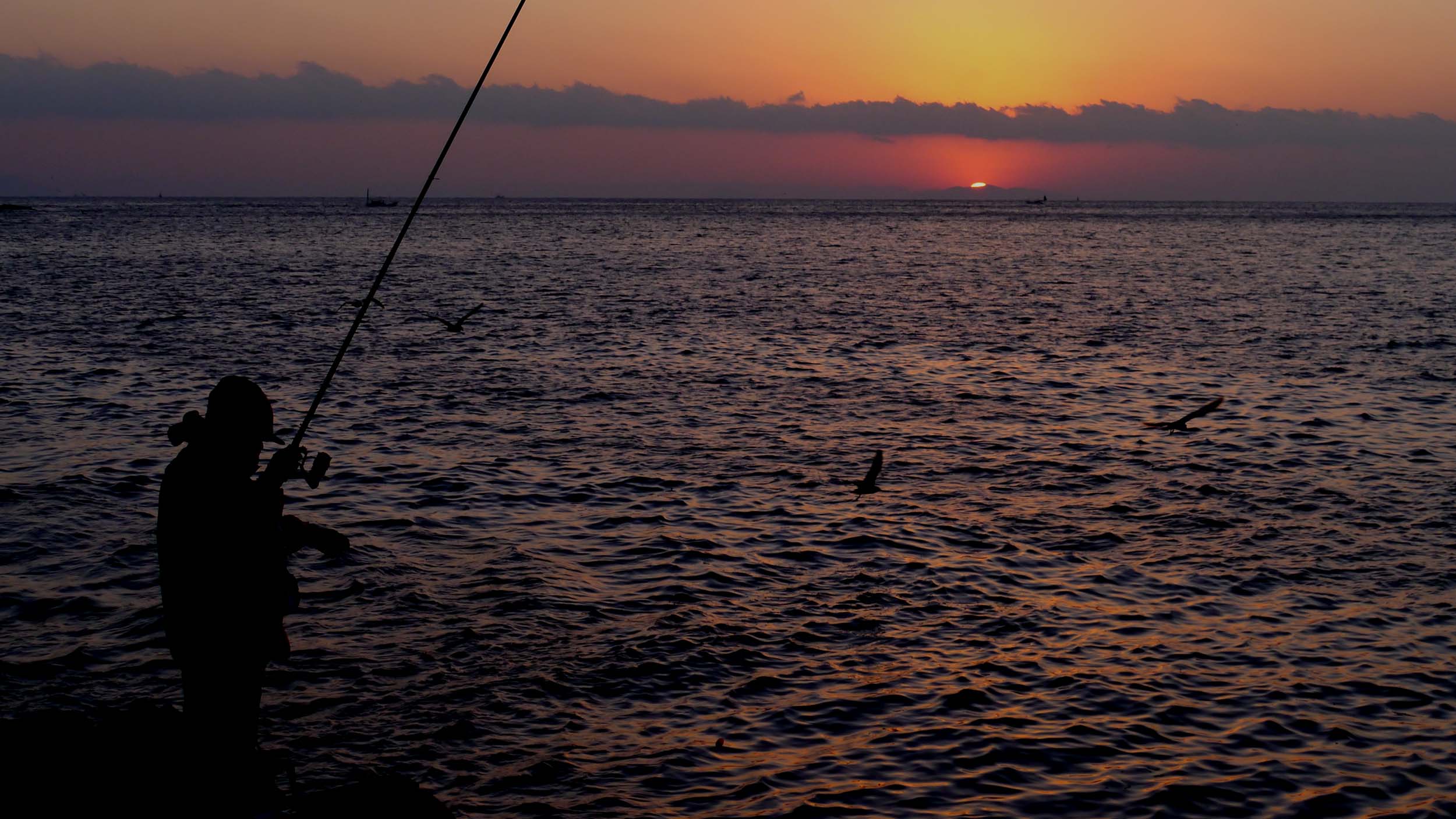 鶴見半島での初釣りでは日の出を写すことに成功。