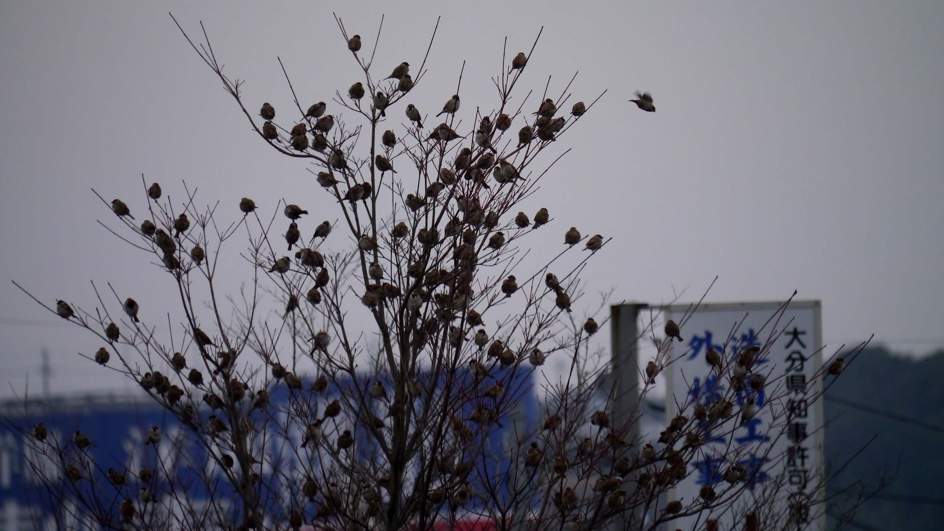 大分市内のこの場所には、沢山のスズメたちが集まっています。