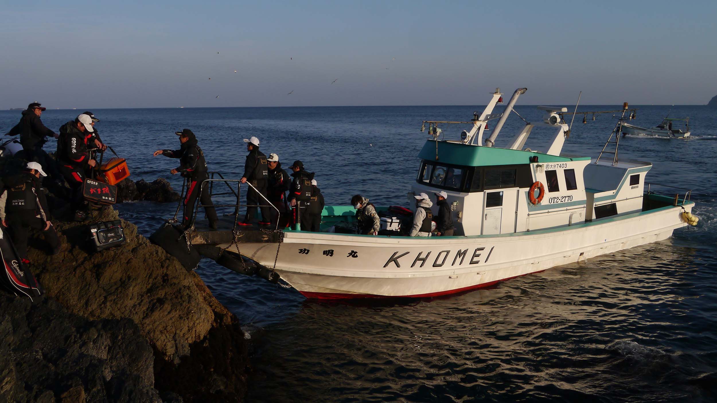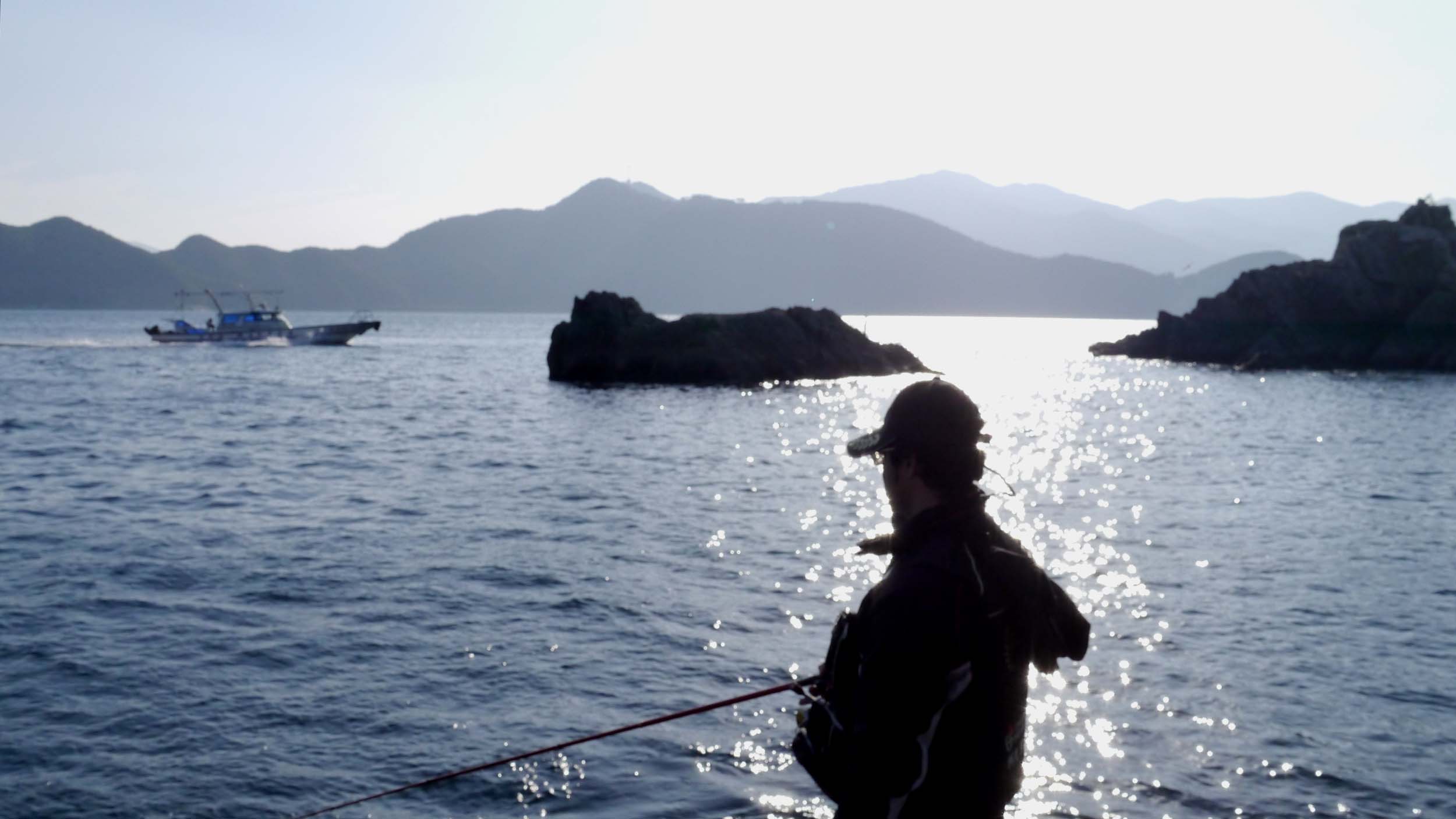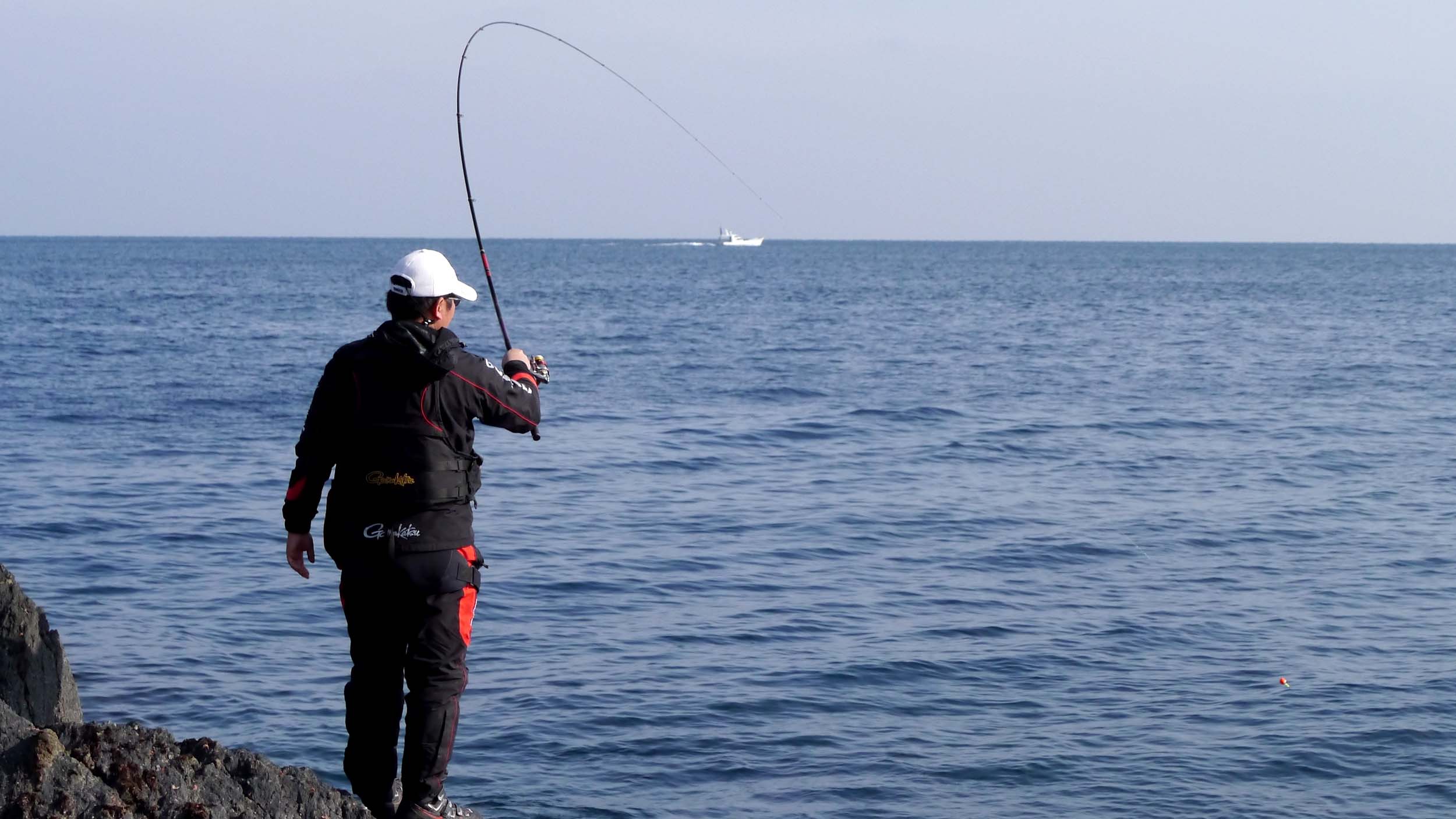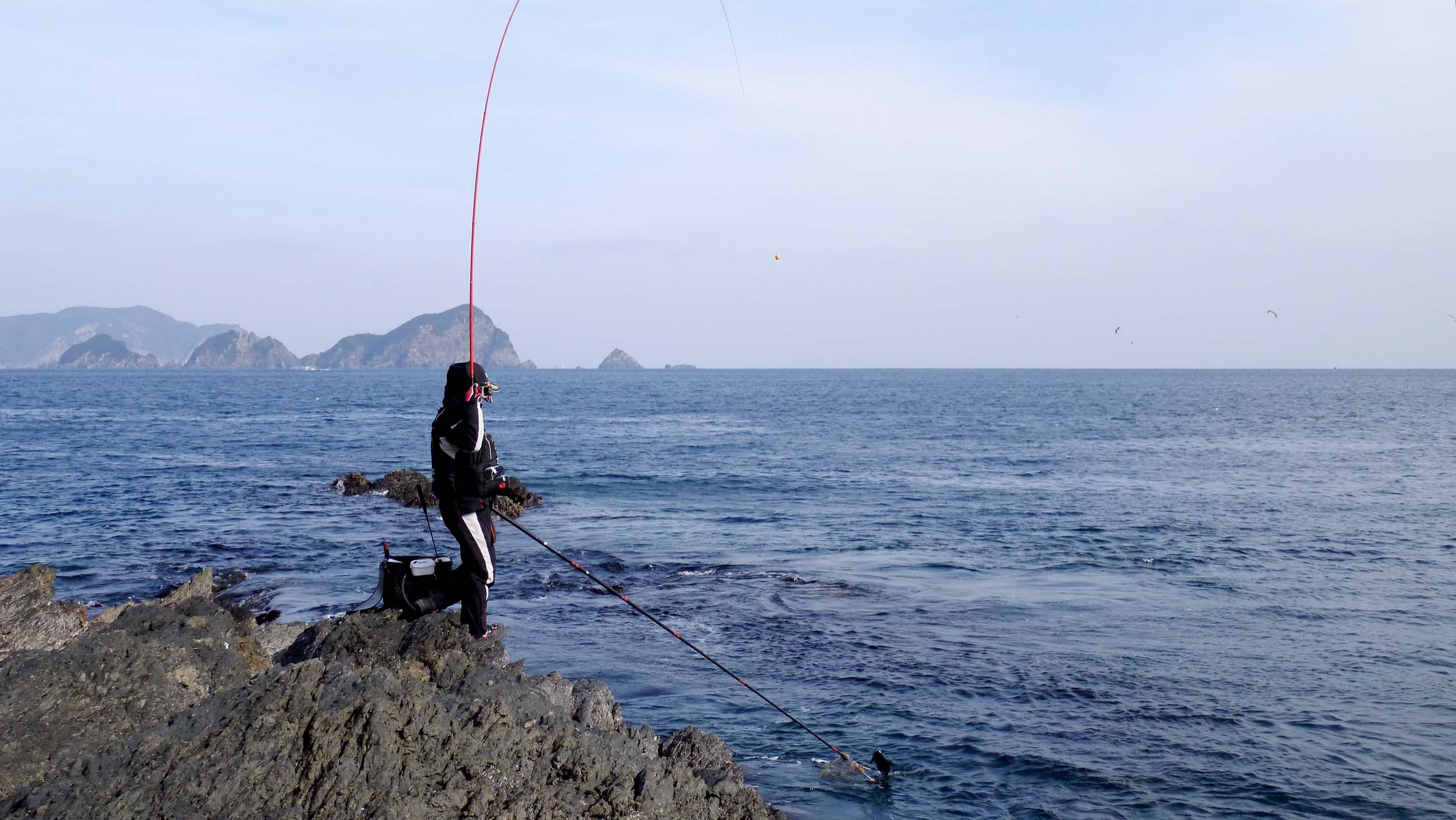 釣研FG東九州支部の決勝大会で、最後の戦いに進んだのは牧・利光・有田君ら3人。戦いの舞台は“押出の鼻”で対戦時間は14時から16時という、大分県の冬の磯ではゴールデンタイムの時間帯です。