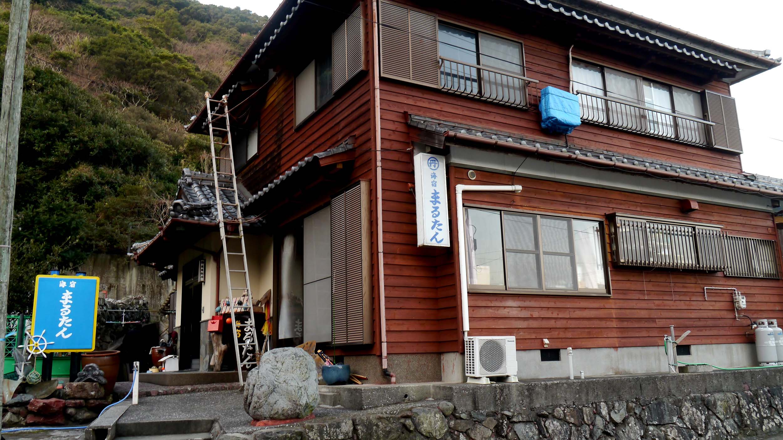 9日、米水津で釣りを終えたあとは、鶴見の丹賀にある“まるたん”で宿泊。