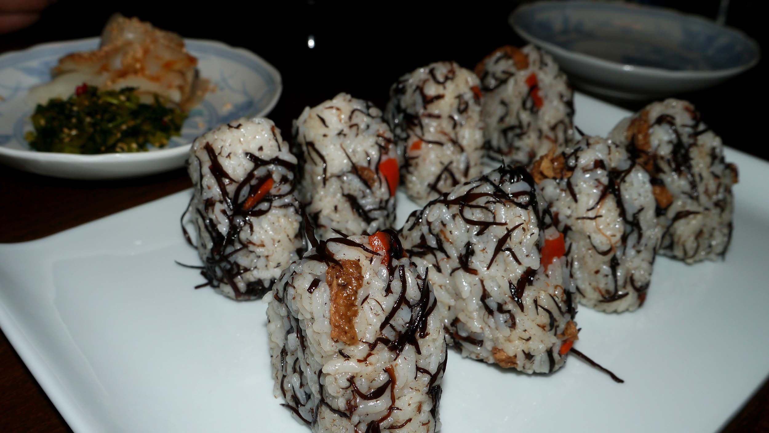 ヒジキのおにぎりと漬物