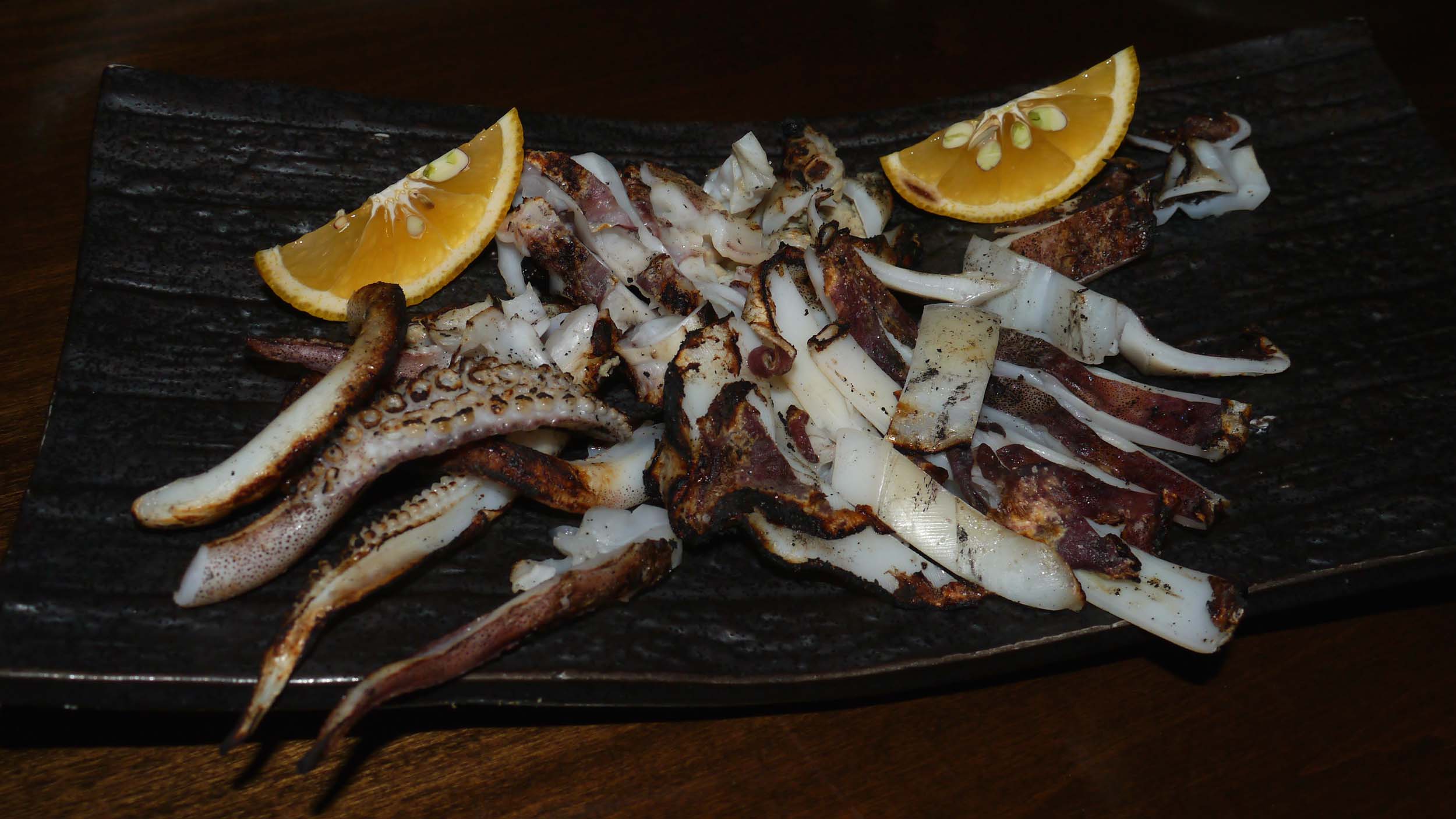 アオリイカのゲソなどを塩焼き
