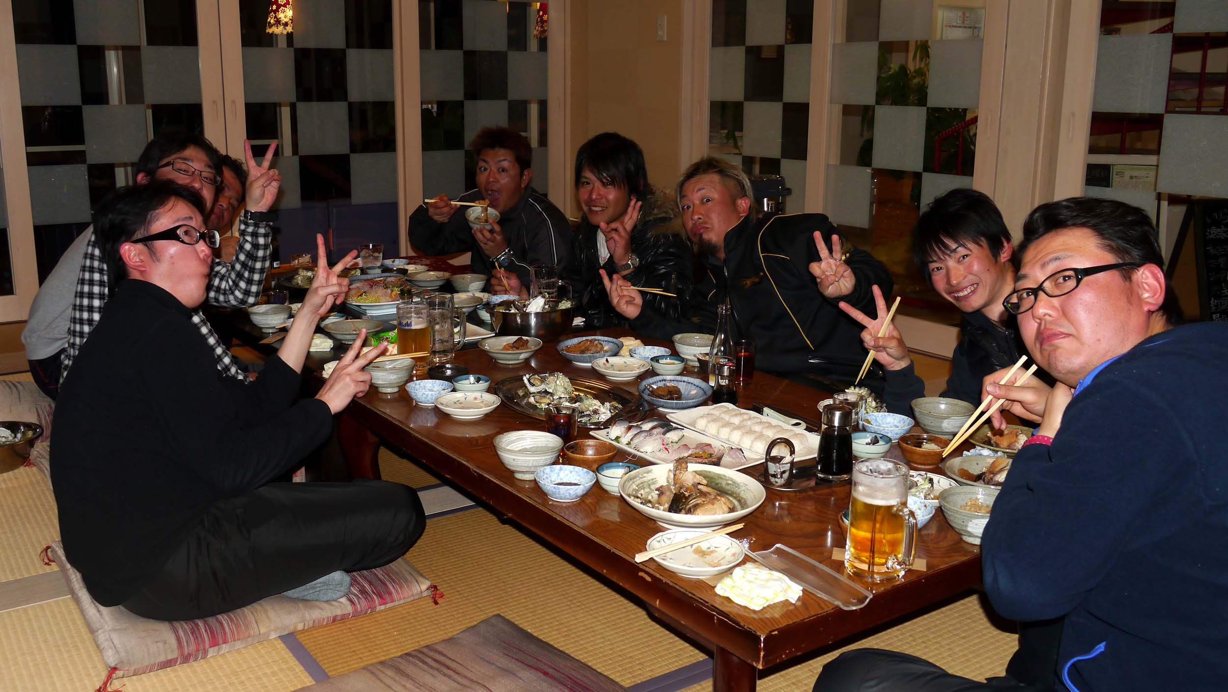 私と木村君は、夜の食事をごちそうになり、楽しい一時。
