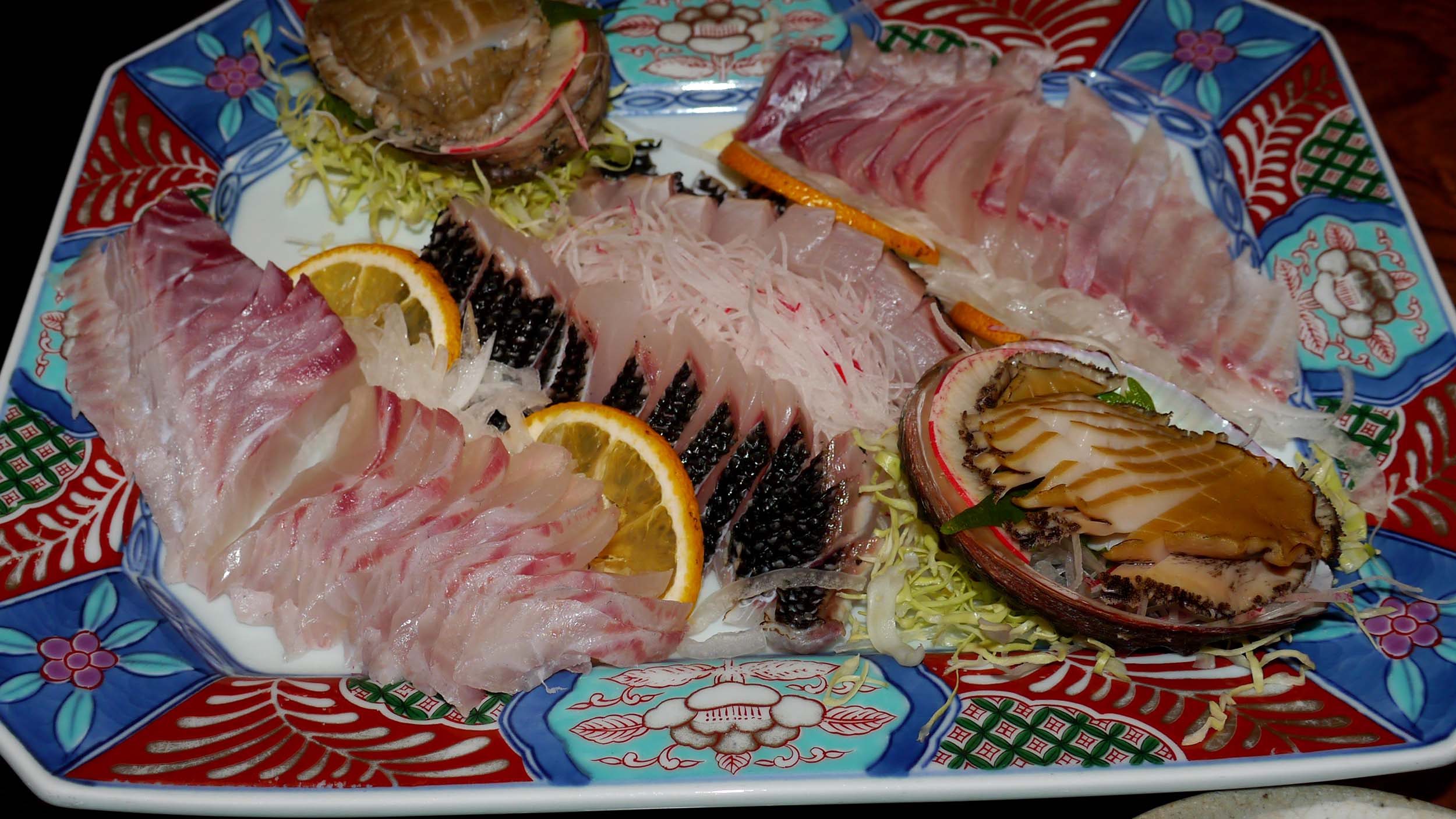釣れたグレとイシダイは、急遽刺身にして頂き話も弾みます。