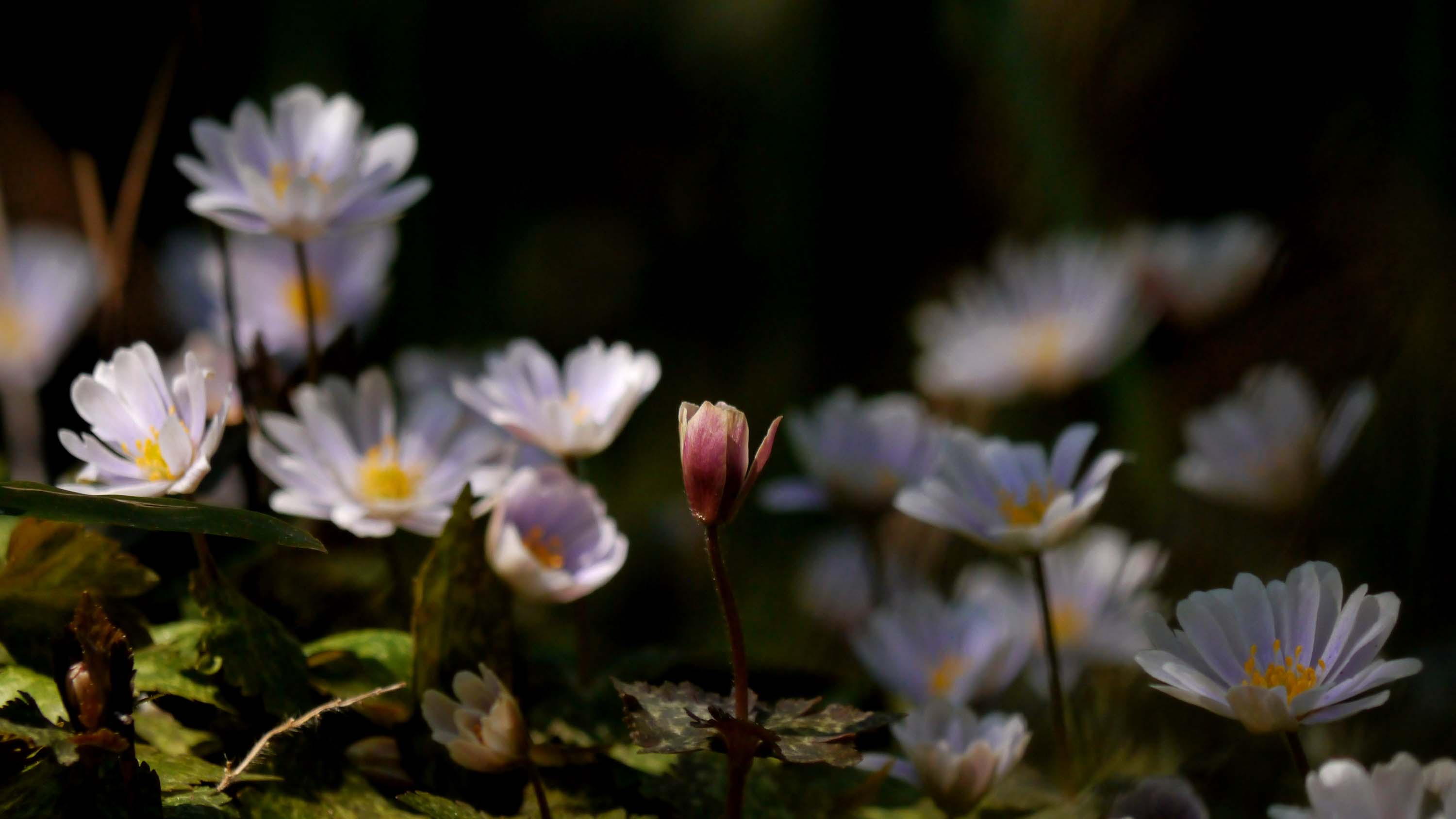 福岡からの仲間を、ユキワリイチゲの群生地へ案内。