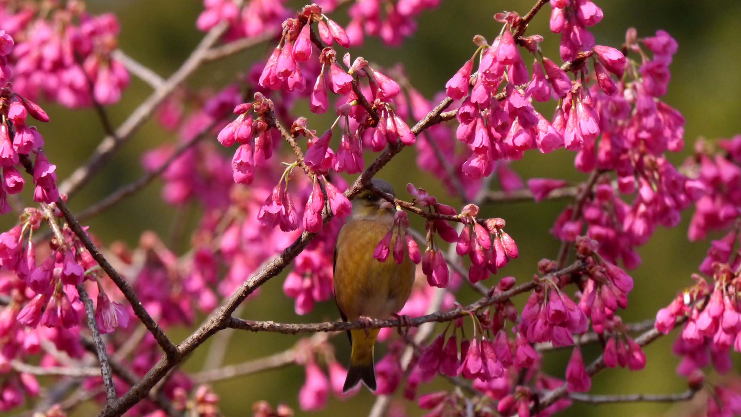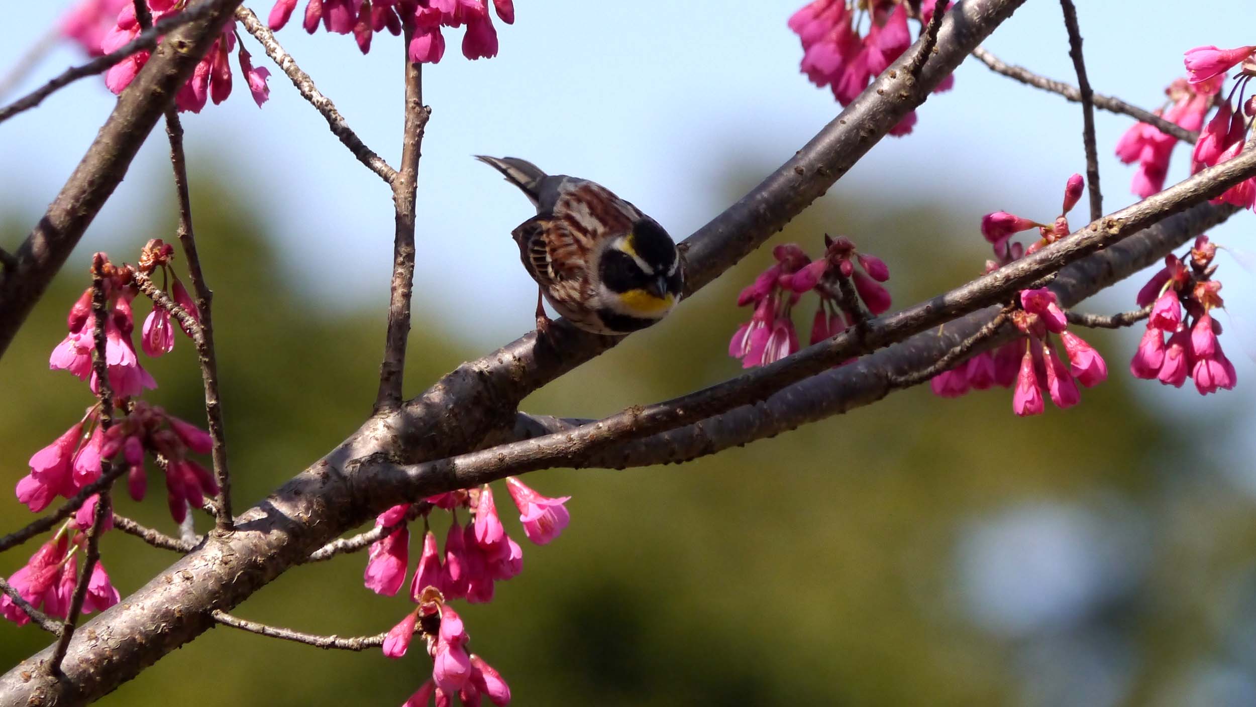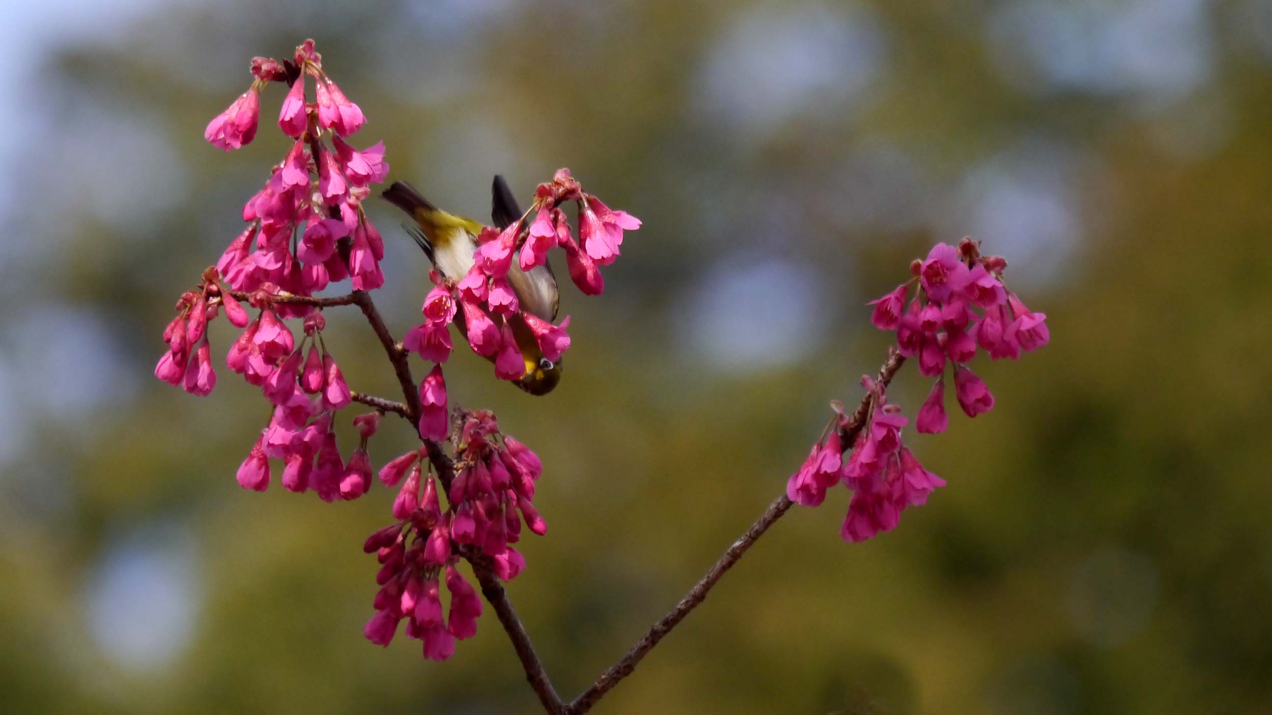 他の小鳥たちも、カンヒザクラを楽しんでいる様にも見えます。