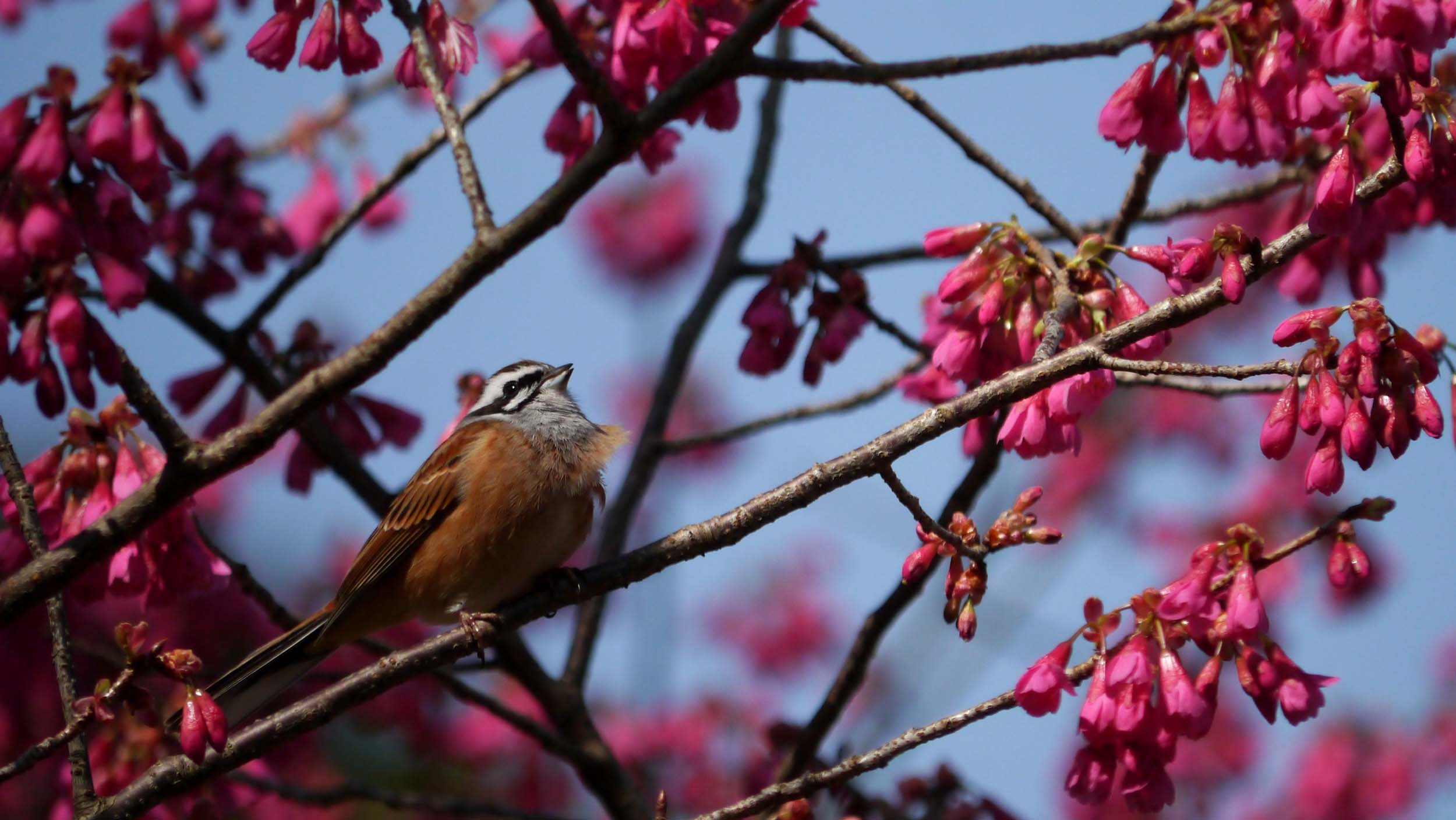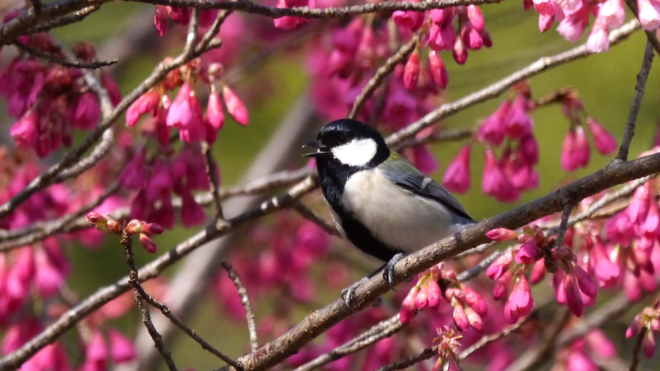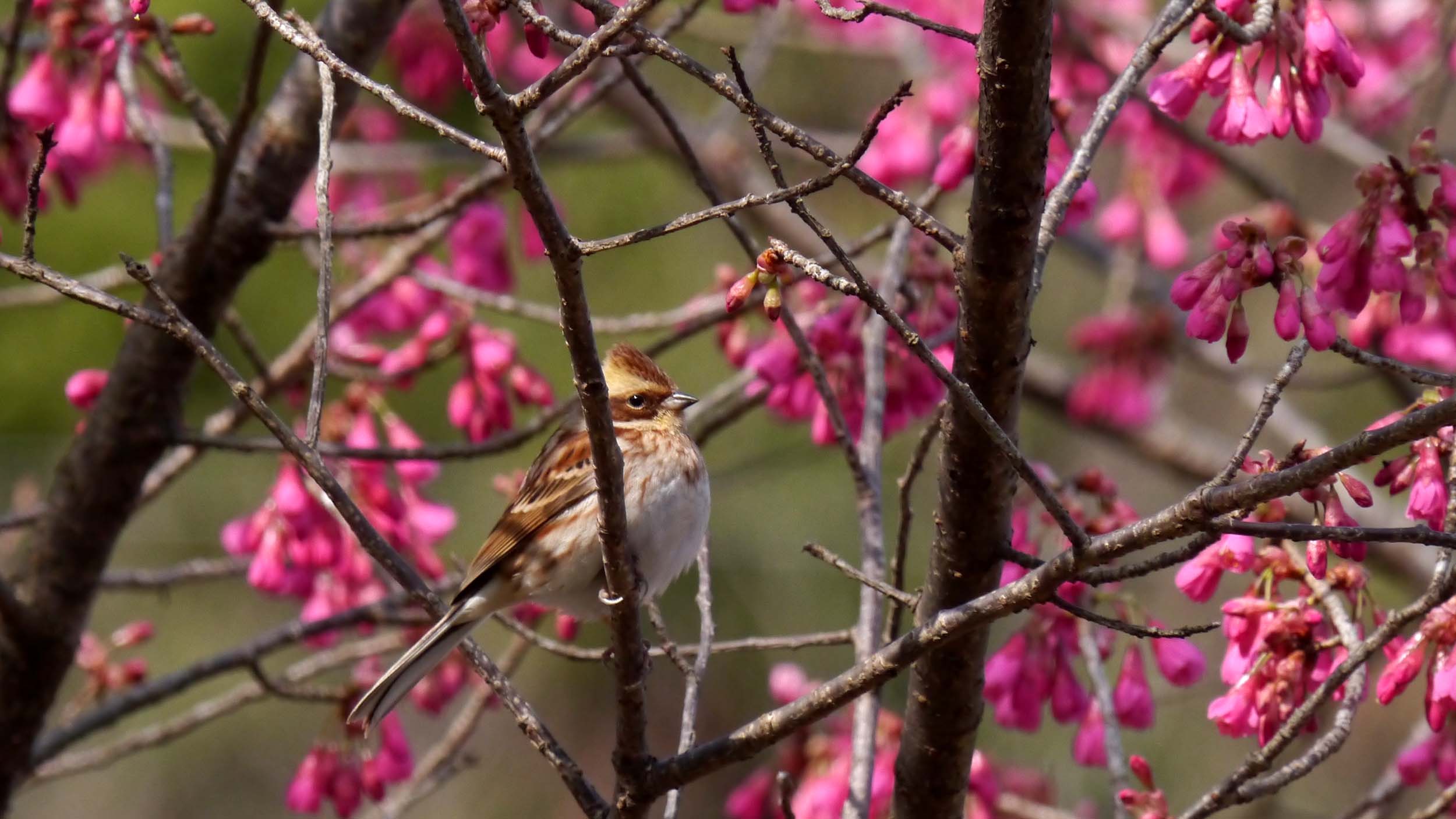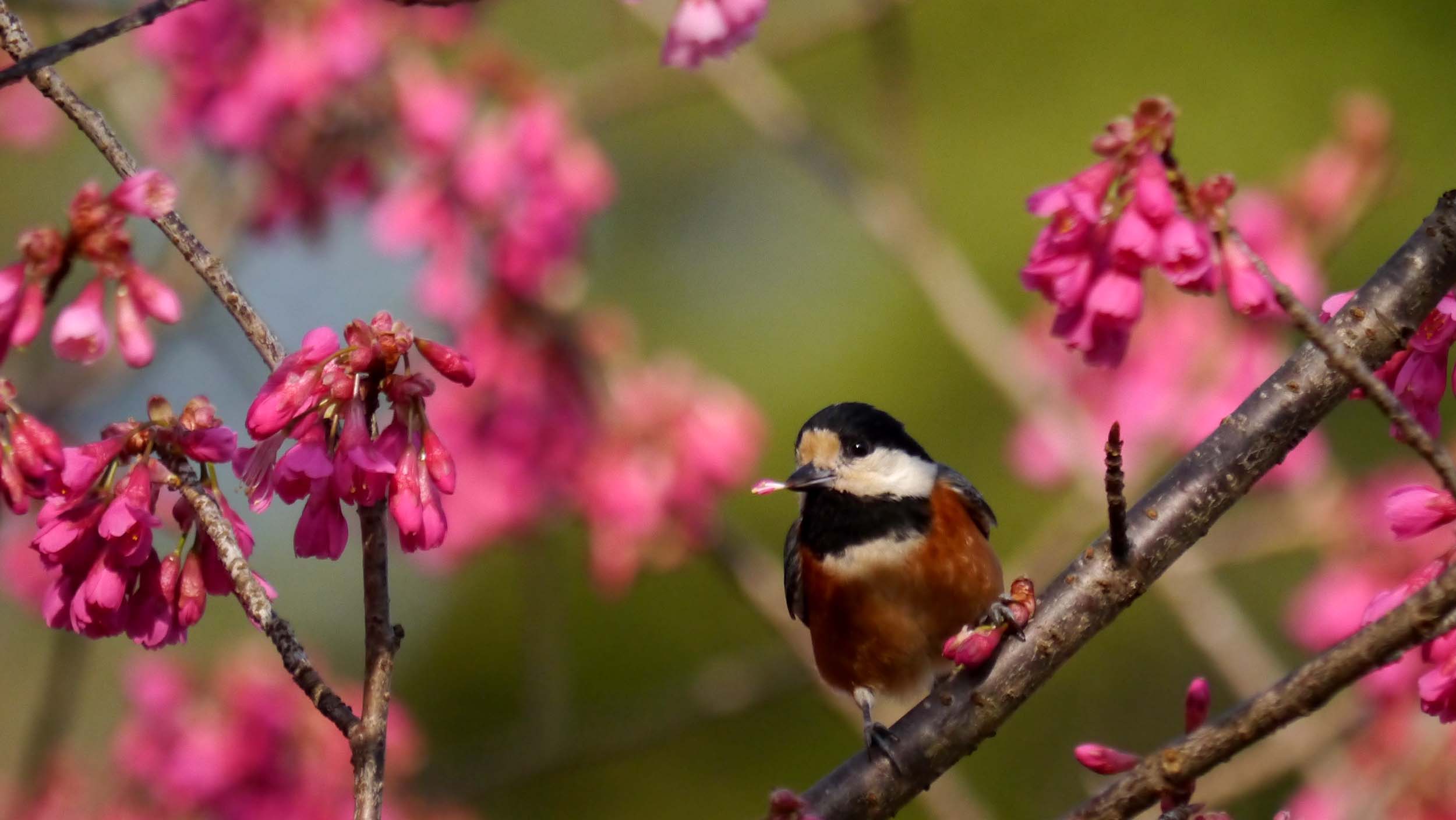 他の小鳥たちも、カンヒザクラを楽しんでいる様にも見えます。