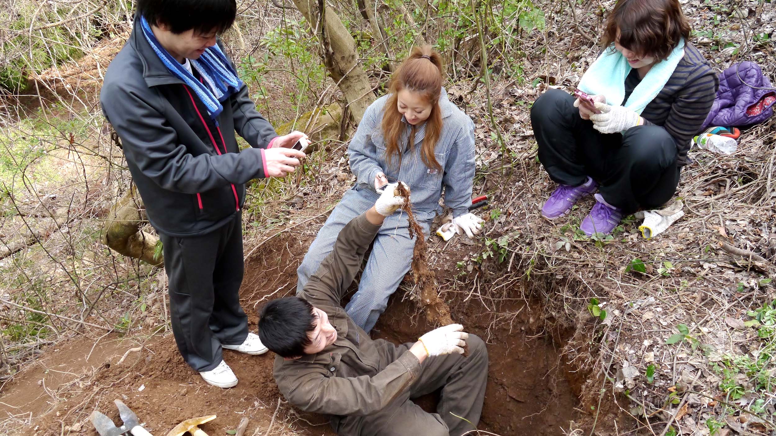 道路の下でガレ場の土が多く、自然薯は良品とは言えませんが体験終了。