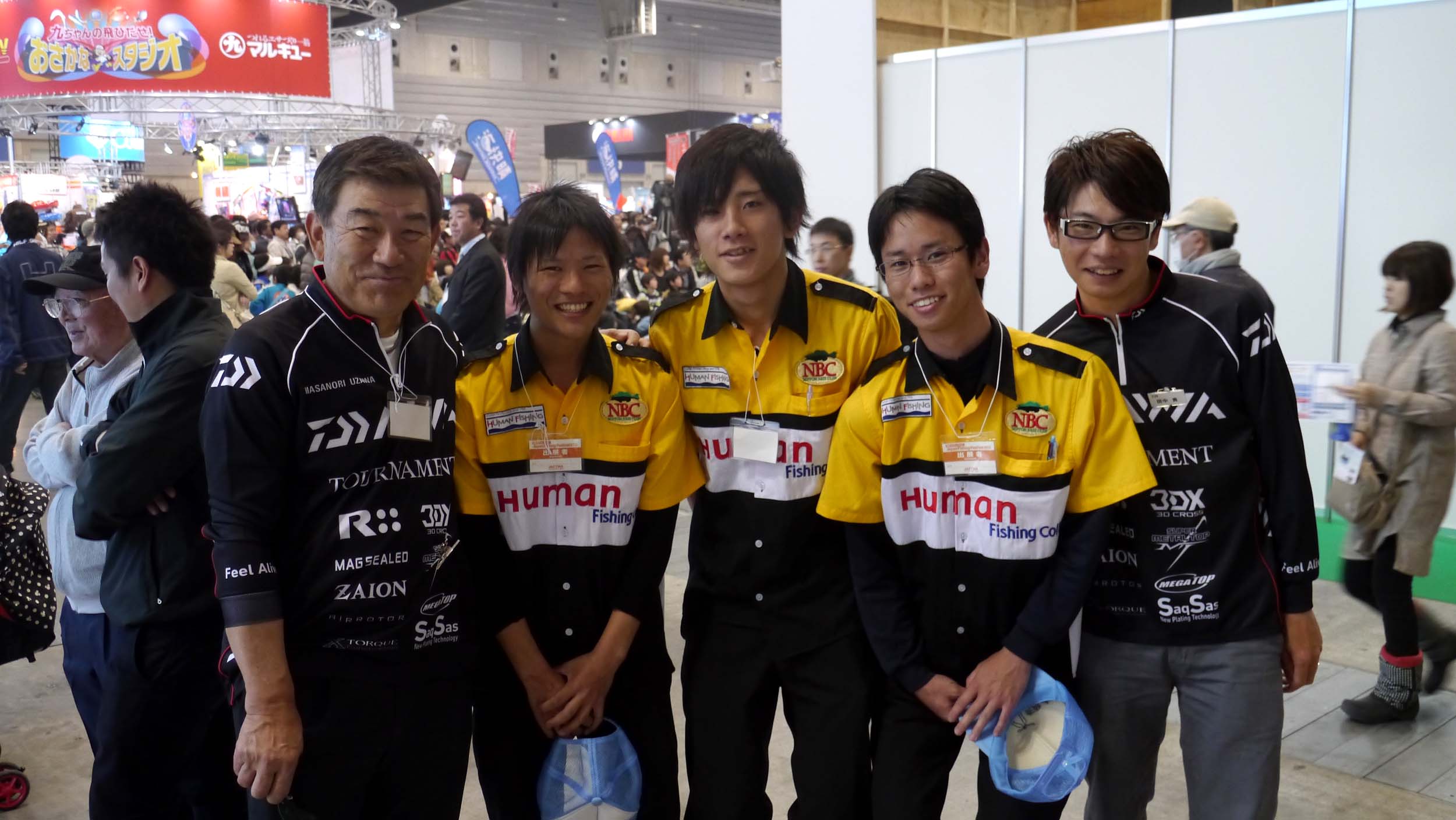 ダイワブースで、鵜沢さんと田中君に囲まれて・・
