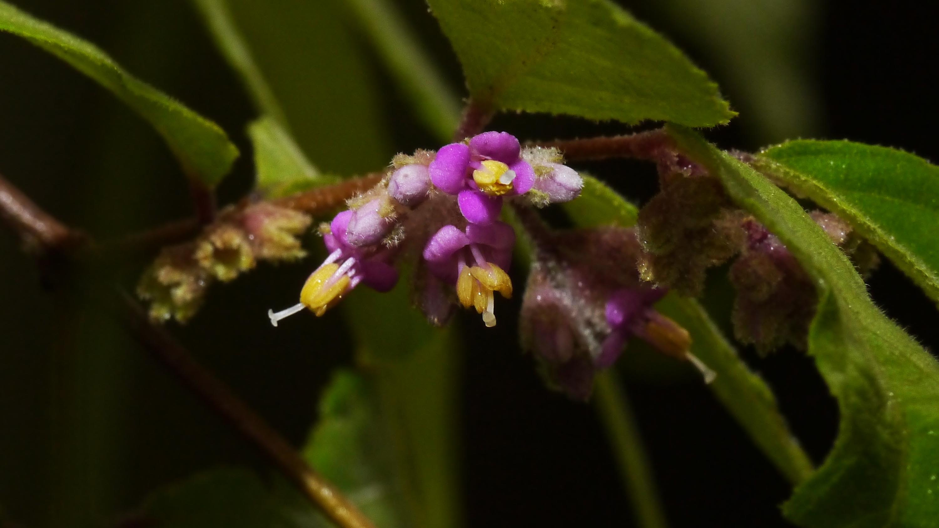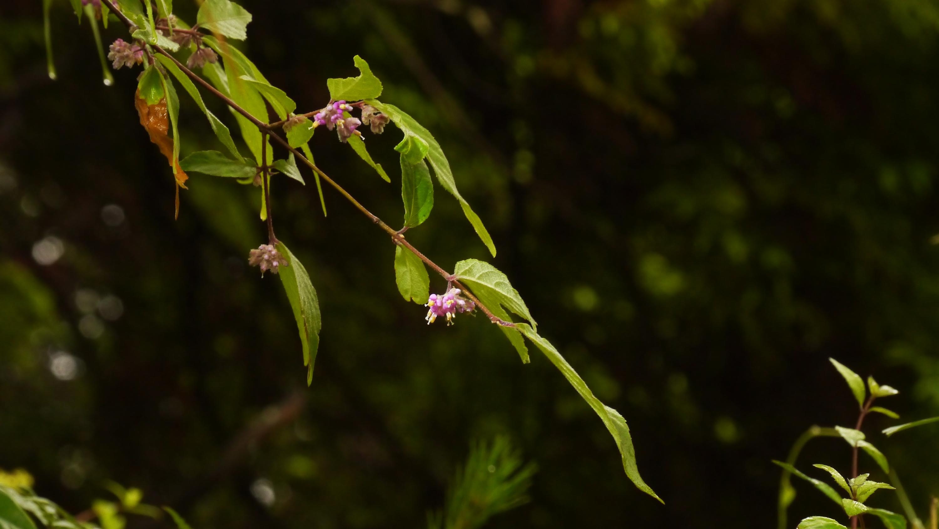 以前は紫の実を写しましたが、今回は運よく花が咲いている時に出会えました。