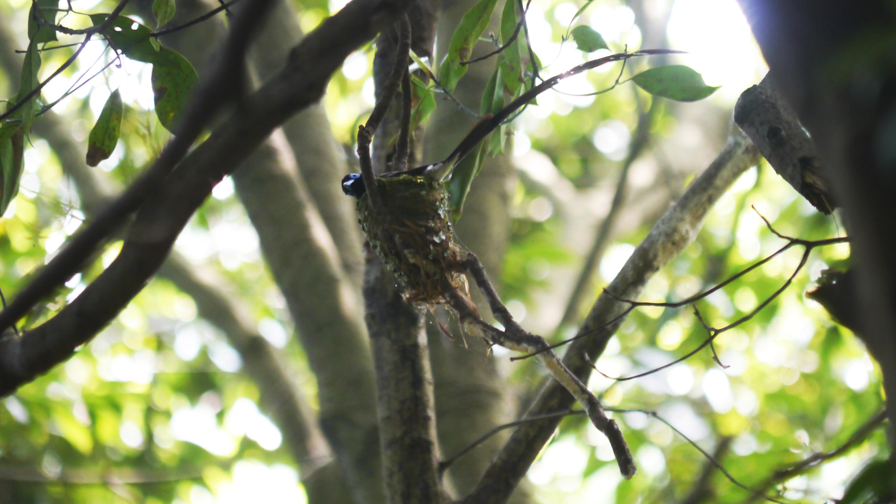 今年はサンコウチョウの数が多く、県民の森でもかなり確認しており、2か所で抱卵中。上流側の巣は、5月31日時点でカラスを追い払っていた夫婦が居て、その場所で6月6日に抱卵しているメスを、福岡の仲間が見つけてくれたのでした。