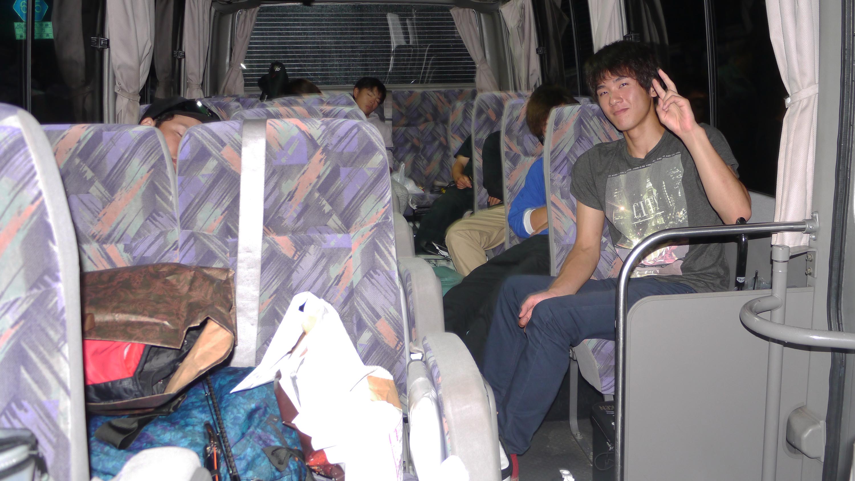 22時、学生はたちは福岡から高速バスで大分市内へ。