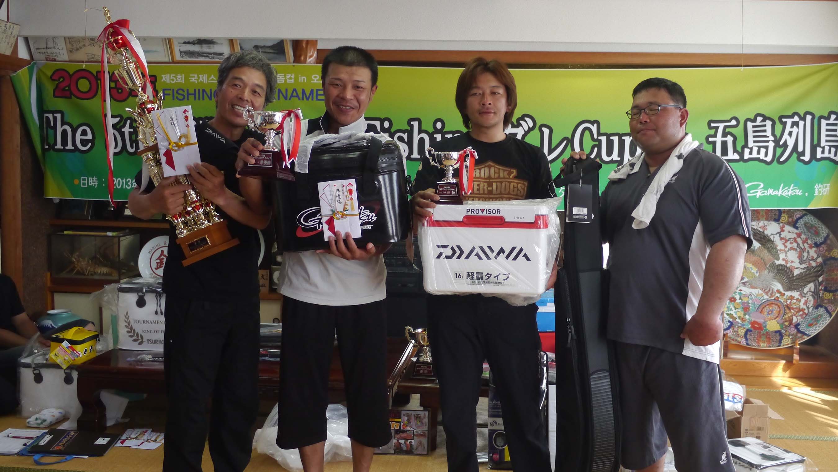 決勝の4名・左から1~4位で、私・戸次君・村上君・ジャイアン